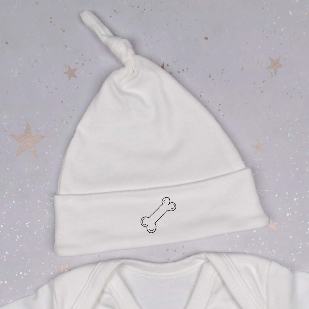 Keep little ones cosy and stylish with this super soft beanie hat. Our baby beanie hats have a knotted top and are printed on the turnover with a unique design. Made from 100% cotton, it can be machine washed and still retain its shape. This beanie hat has a stretch fit so one size fits all, with an approximate circumference of 32cm, it's ideal for babies up to 12 months old.