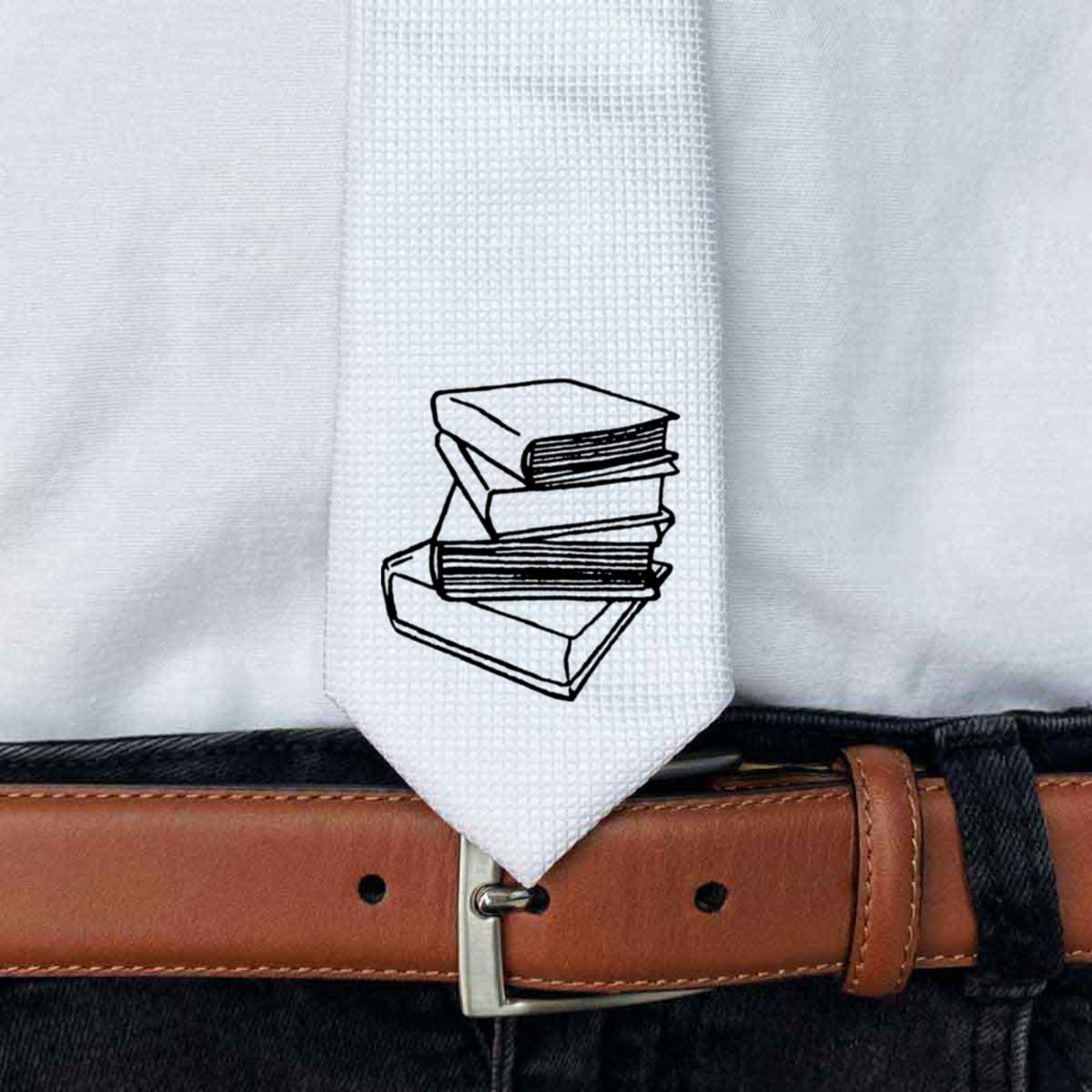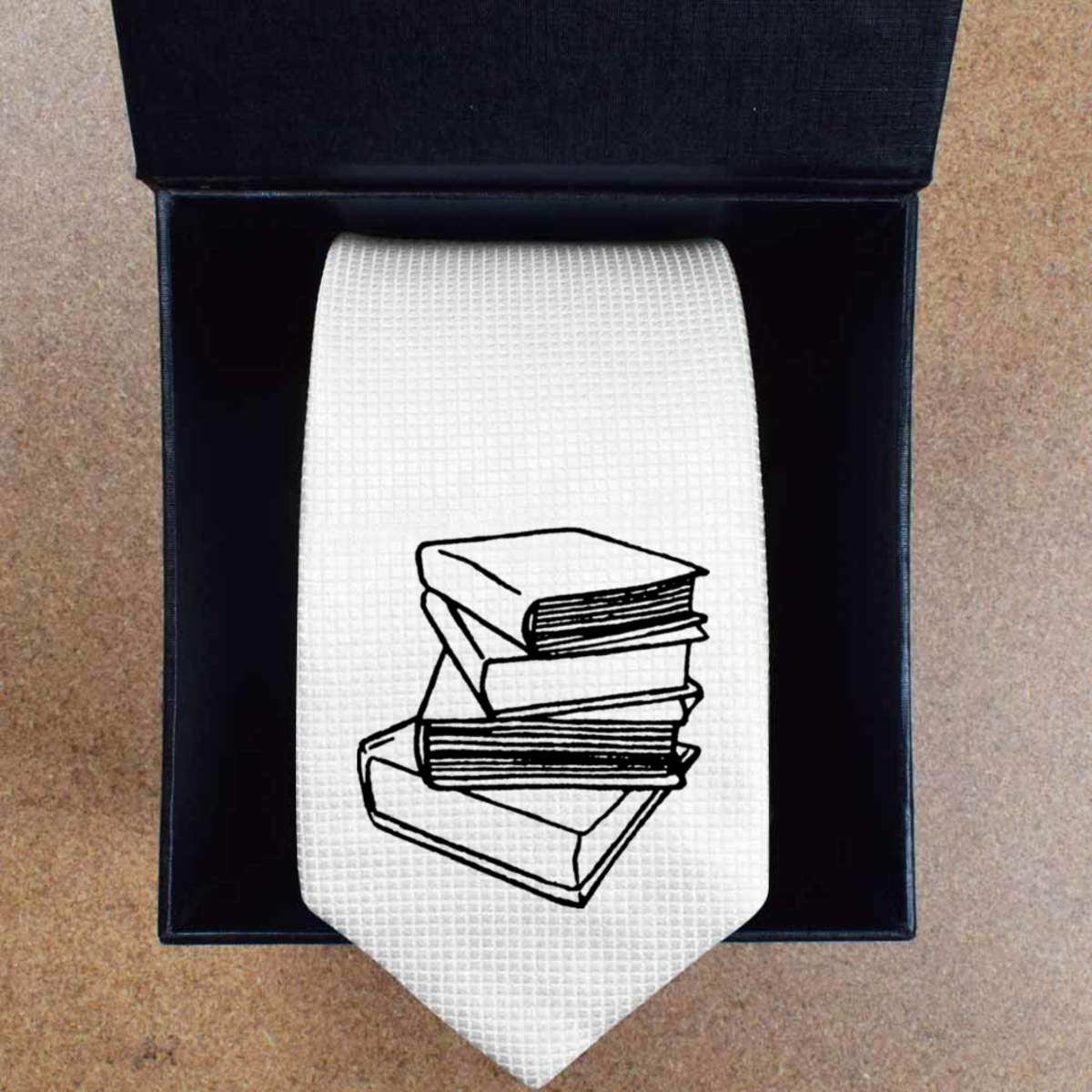'Books' White Tie / Necktie with Gift Box (AT00000650)