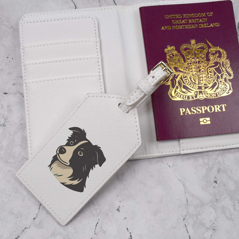A luxury travel set for holiday makers and jet setters! This premium duo consists of a passport cover and matching luggage tag; both made from white, leather-look PU and printed with a unique design.