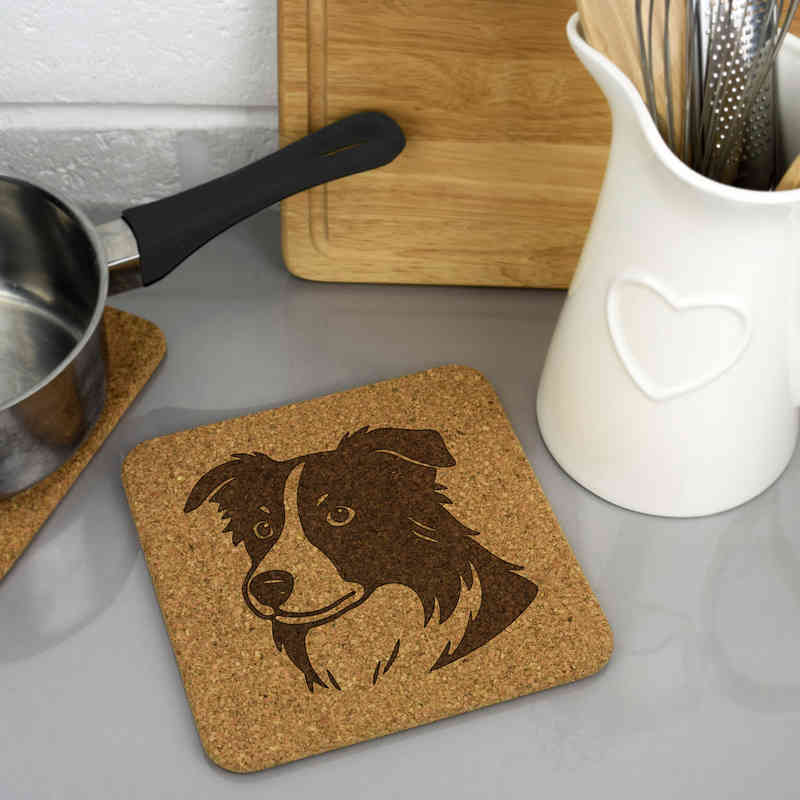 'Border Collie Head' Square Cork Trivet / Pot Stand (TR00030744)