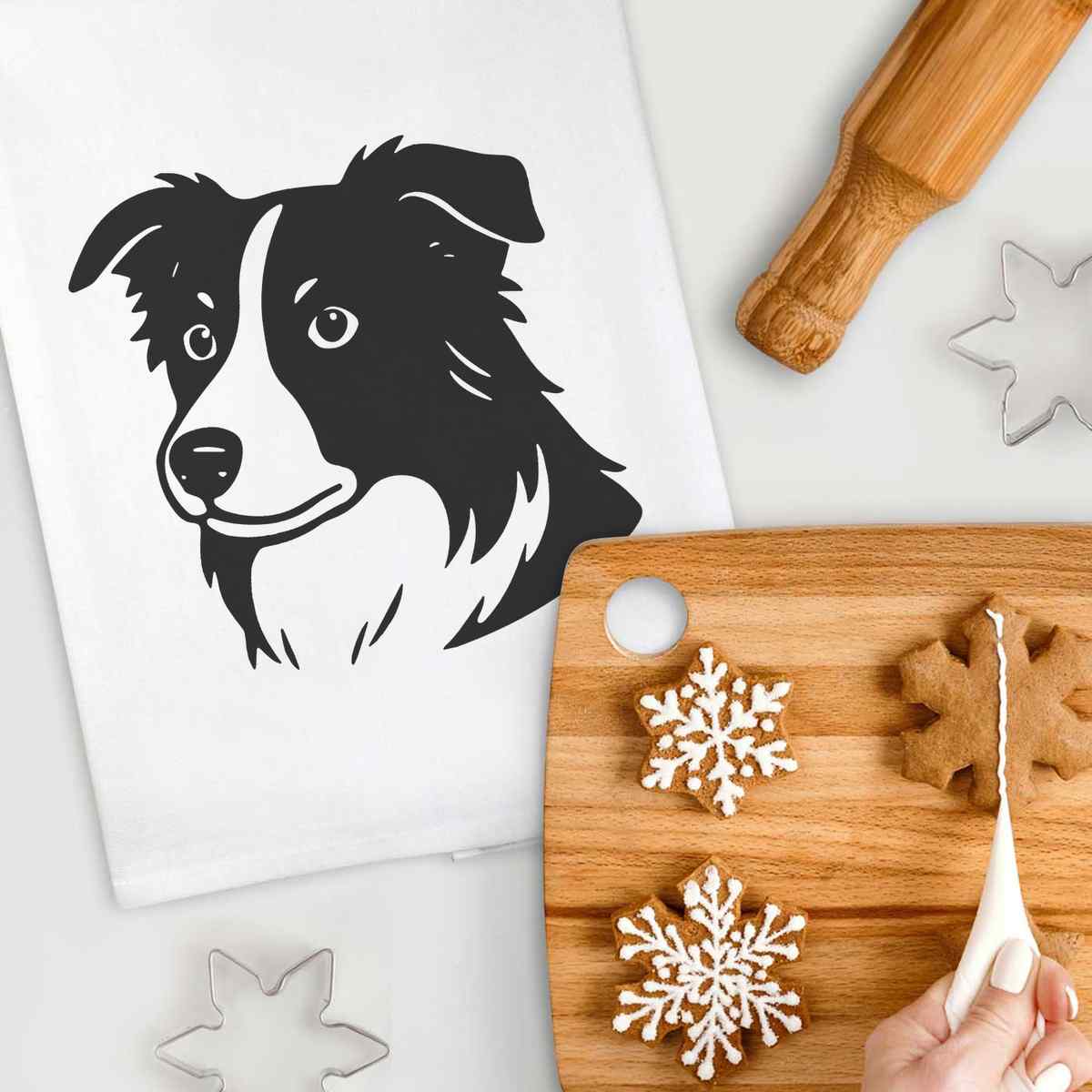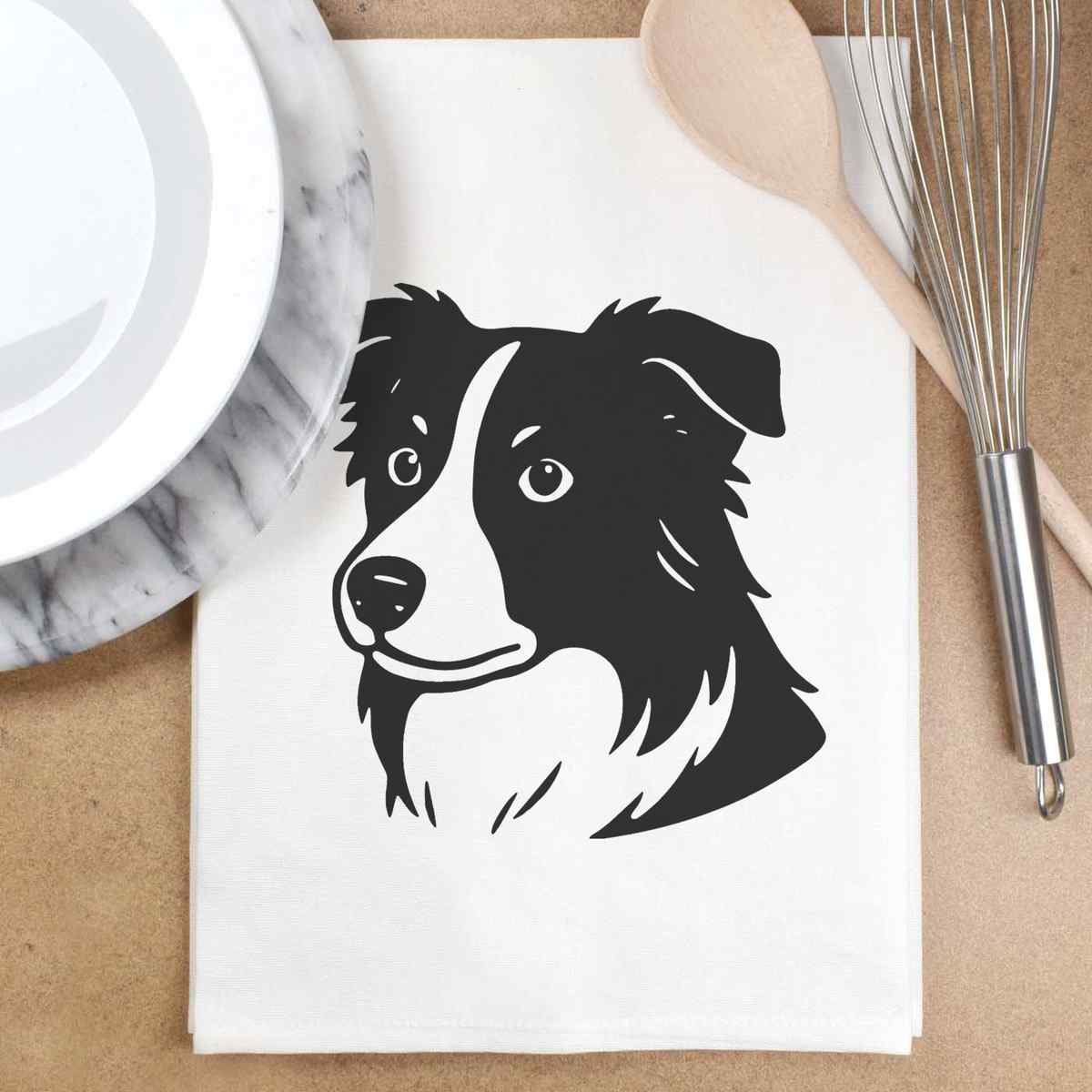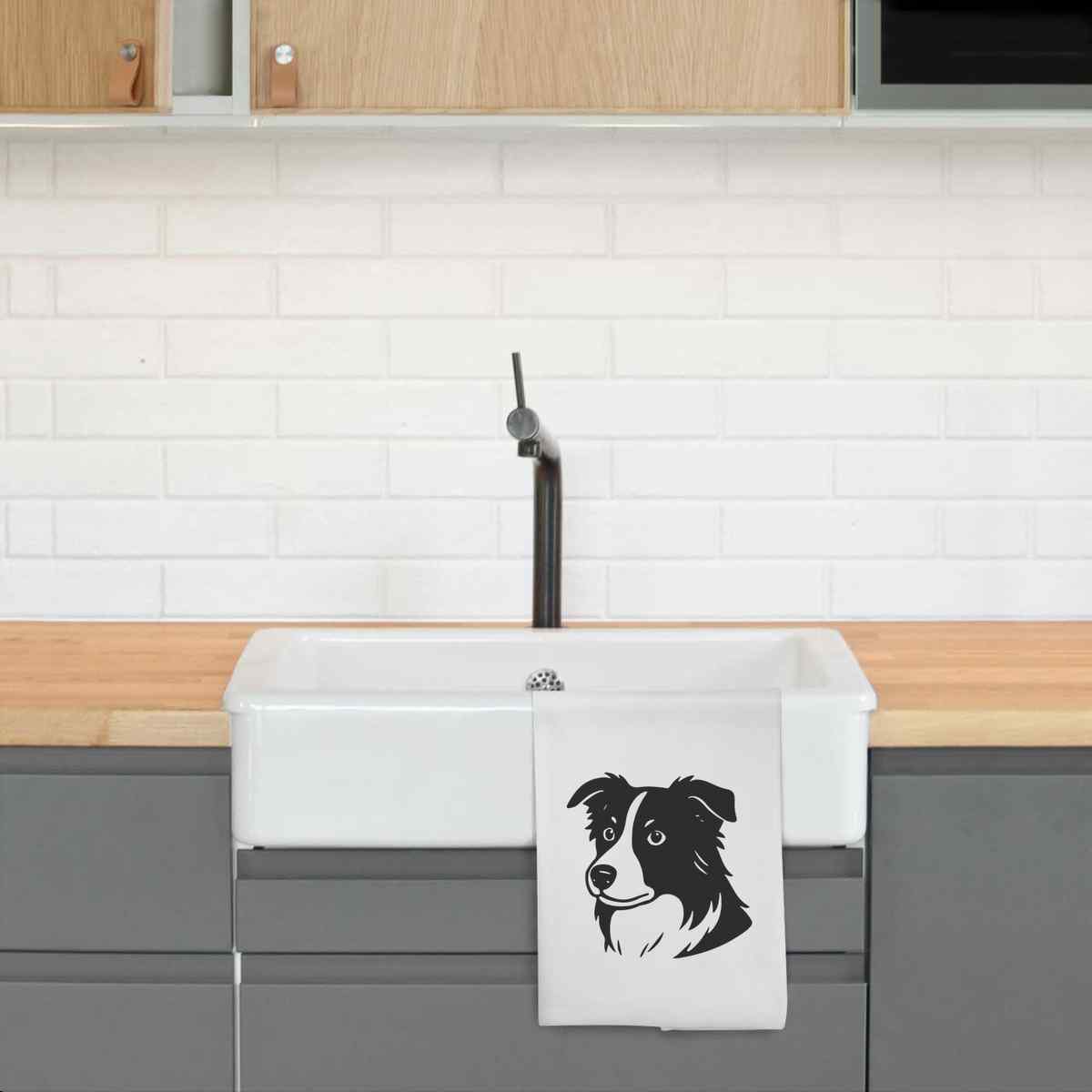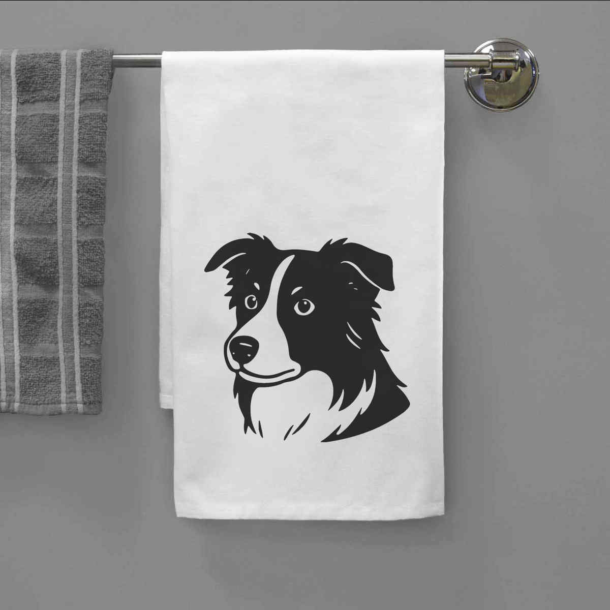 - White cotton tea towel with hanging loop