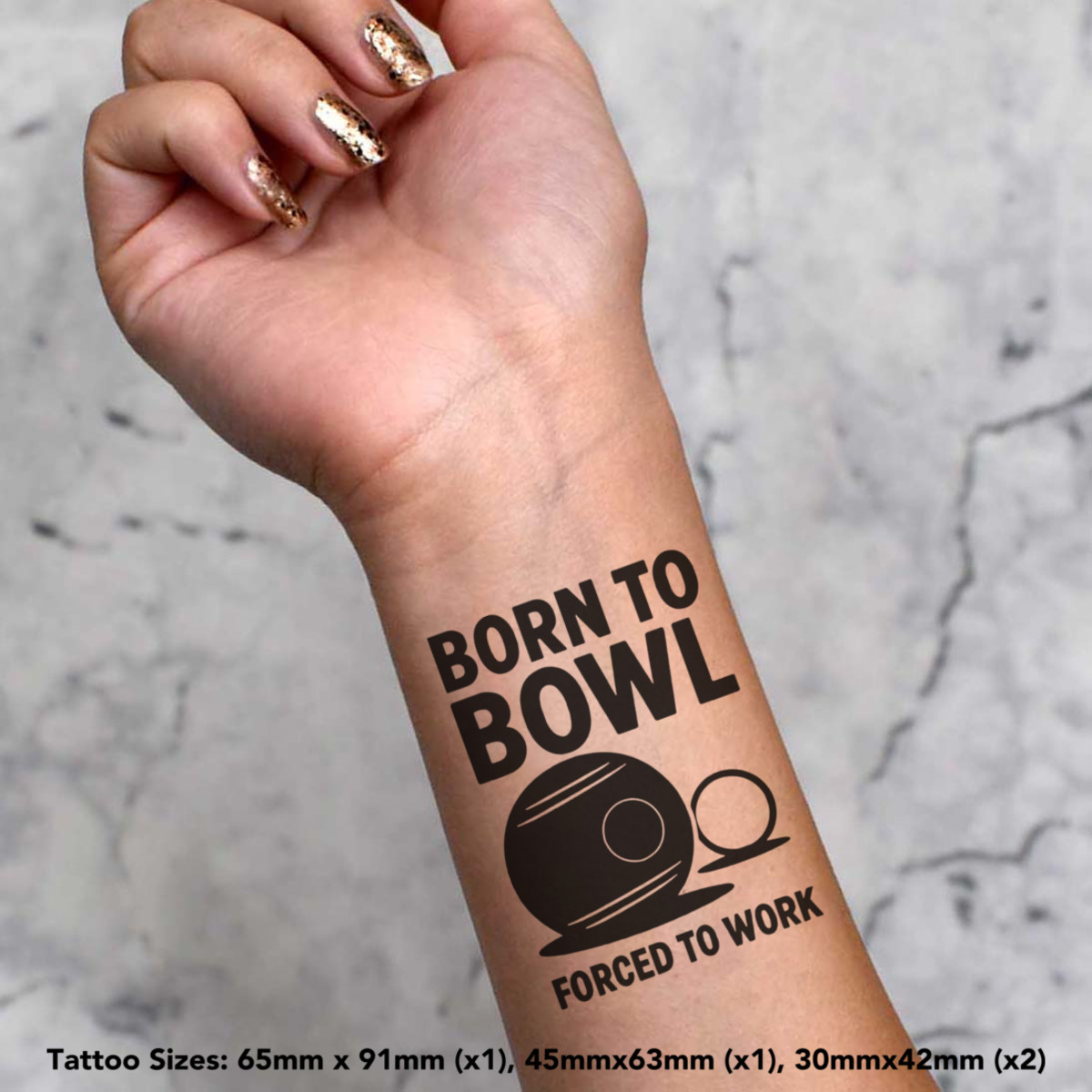 'Born To Bowl, Forced To Work' Temporary Tattoos - Water Resistant, Skin-Safe, Non-Toxic Transfers (TO054264)