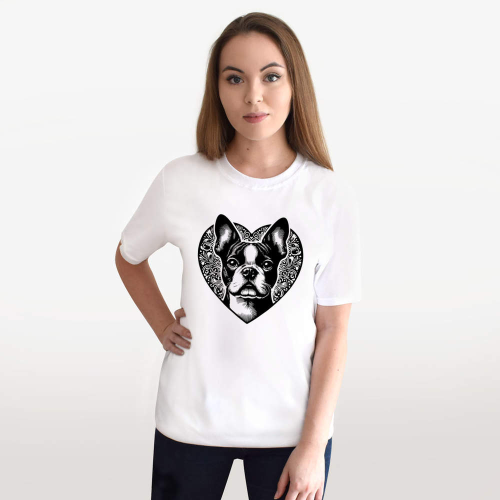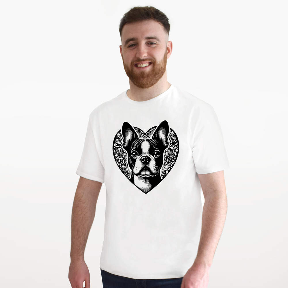 'Boston Terrier Love Heart' Unisex T-Shirt - 100% Cotton (S-XXL) (TA054996)