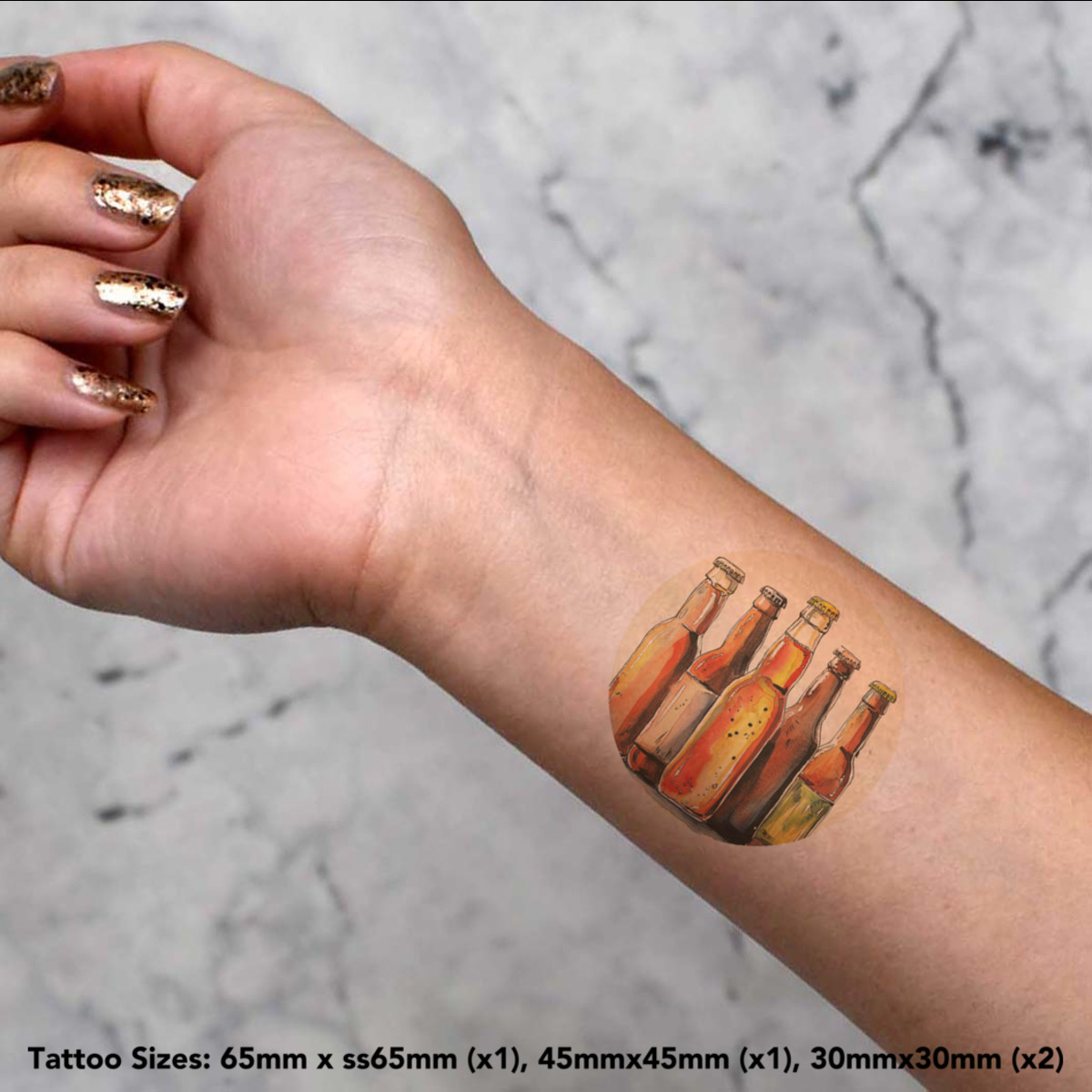 'Bottles of Beer' Temporary Tattoos - Water Resistant, Skin-Safe, Non-Toxic Transfers (TO053343)