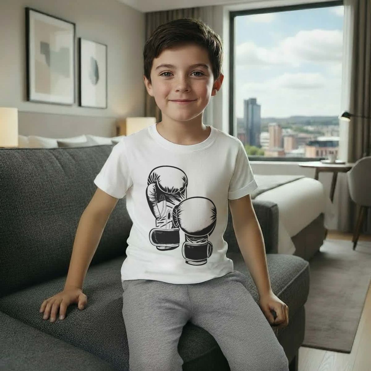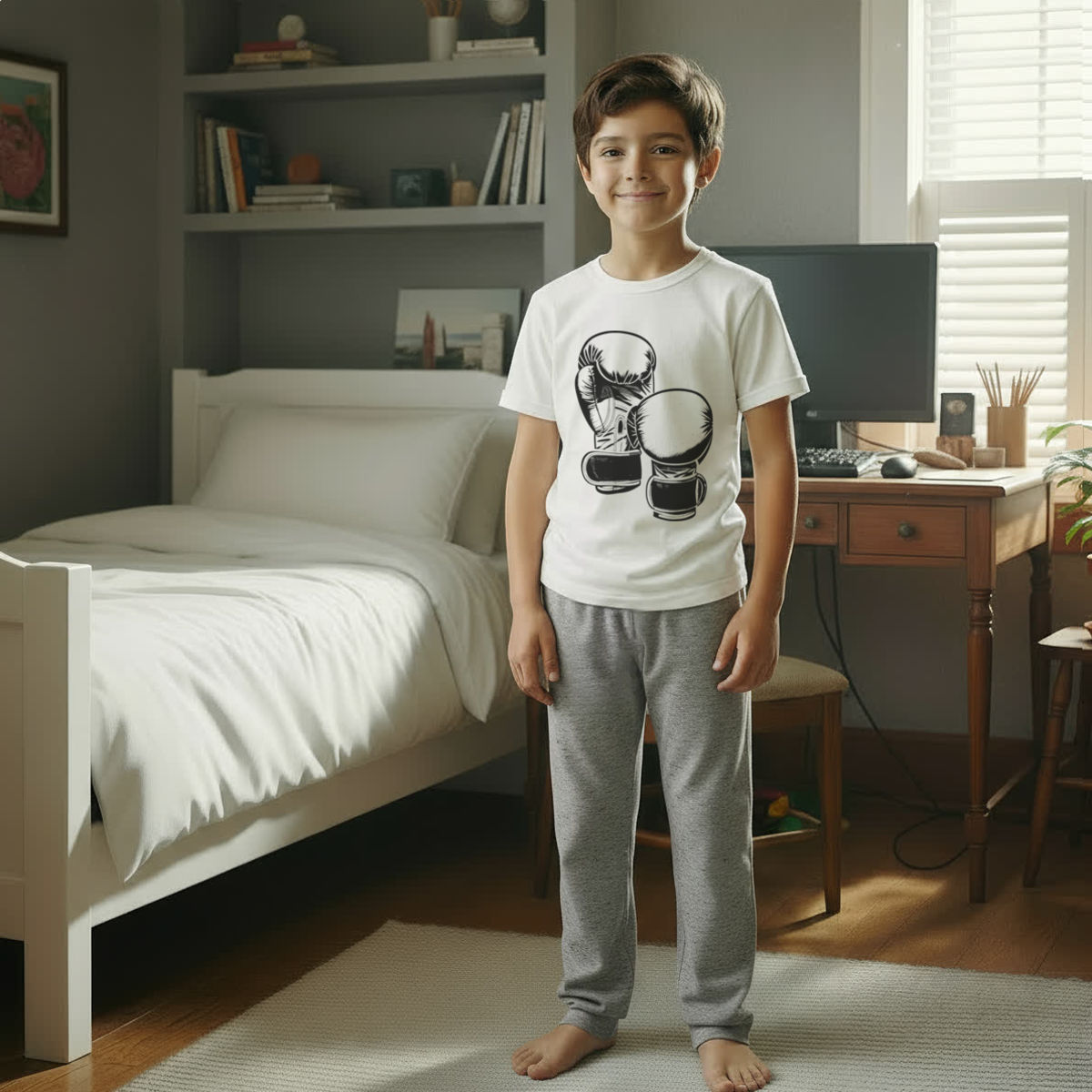 'Boxing Gloves' Kids Cotton Pyjama Set – Comfortable Children's Nightwear, Sleepwear and Loungewear - Unisex for Boys and Girls - Grey, 9-10 Years (KP00141744)