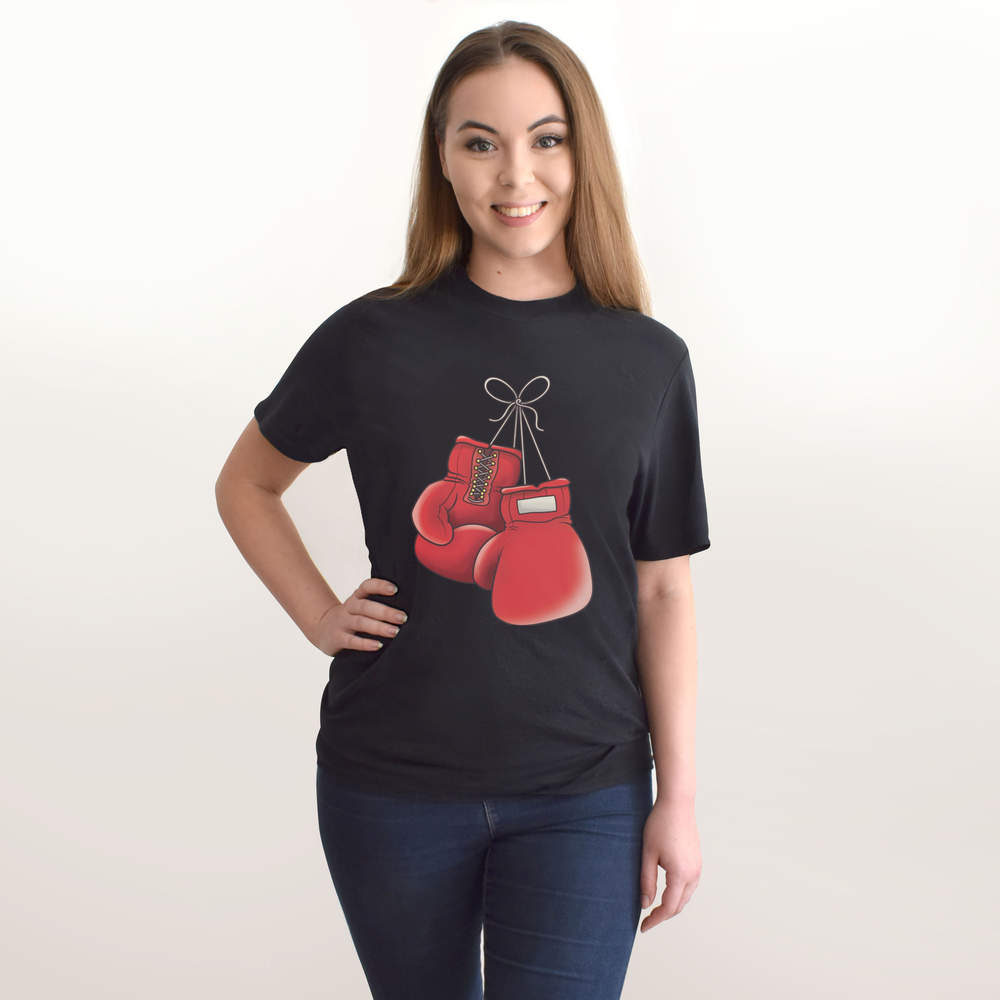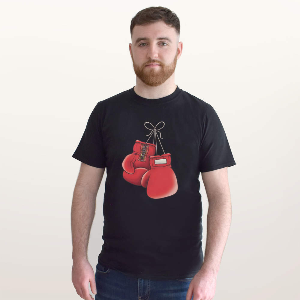 'Boxing Gloves' Unisex T-Shirt - Red Fight Sports Gear Hanging - 100 % Cotton, Black, XL (TA00129340)