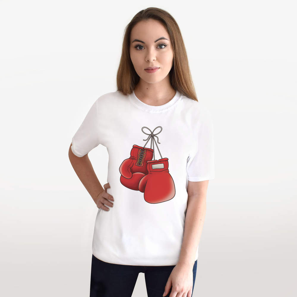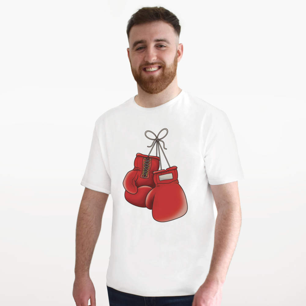 'Boxing Gloves' Unisex T-Shirt - Red Fight Sports Gear Hanging - 100 % Cotton, White, XXL (TA00240356)