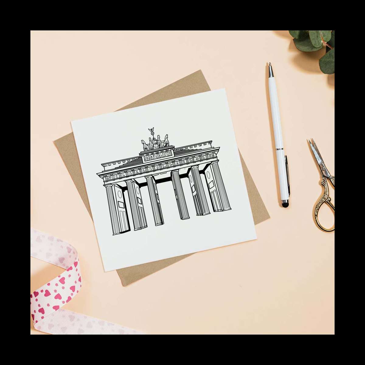 - Square greeting card supplied with a recycled brown envelope