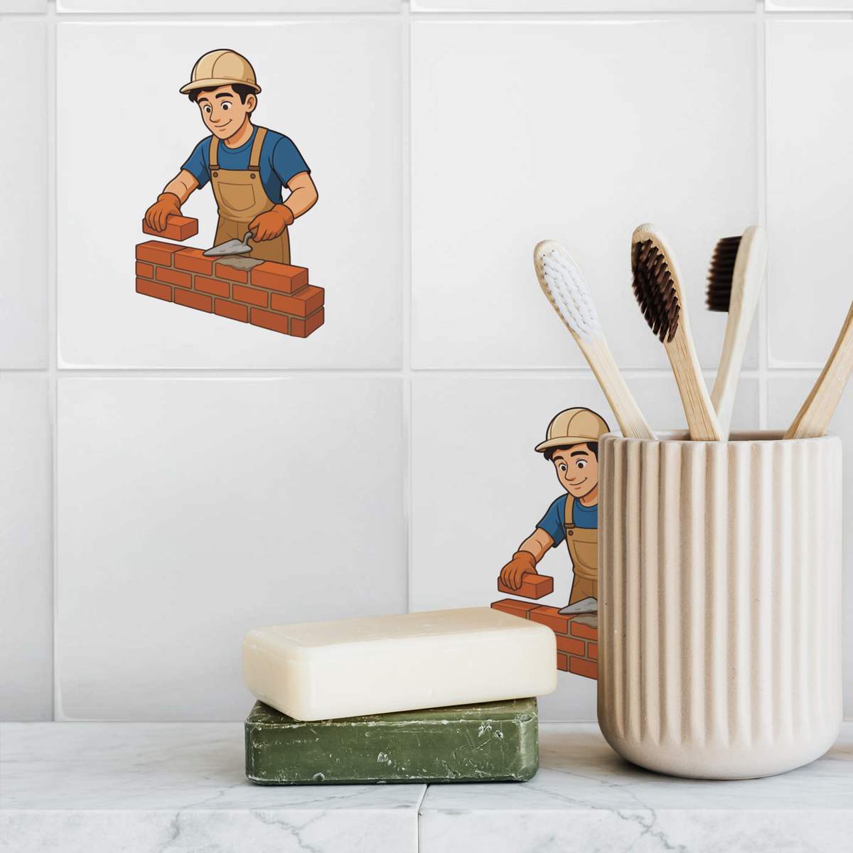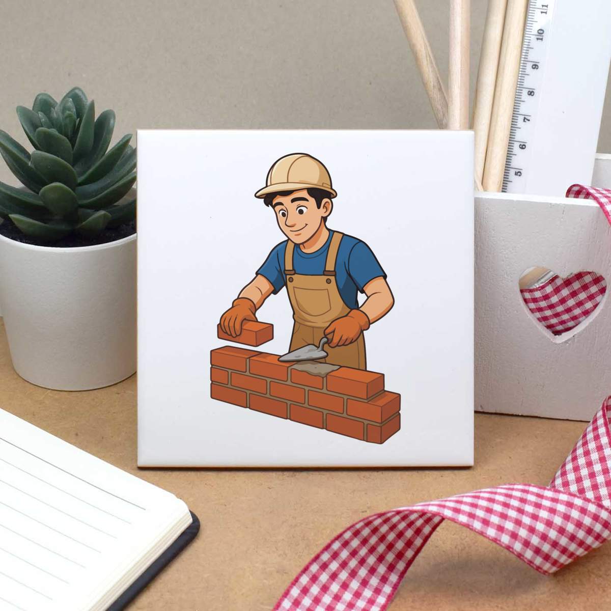 'Bricklayer Working' 108mm Square Ceramic Tile (TD00037354)