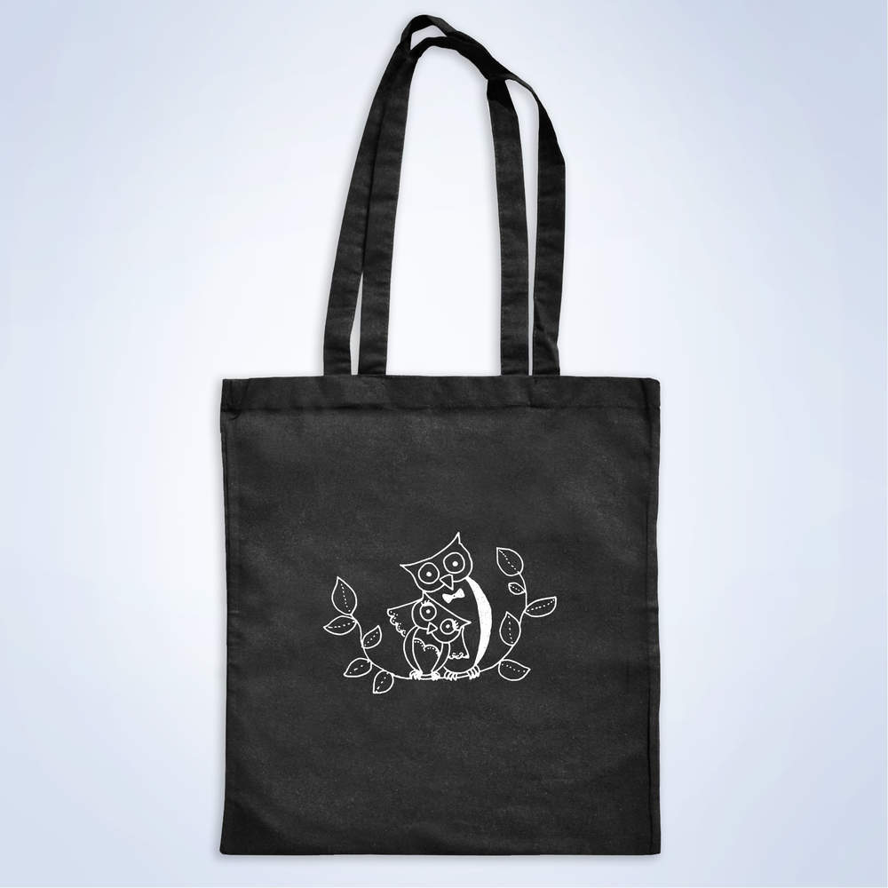 'Bride & Groom Owls' Classic Black Tote Shopper Bag (ZB00003283)