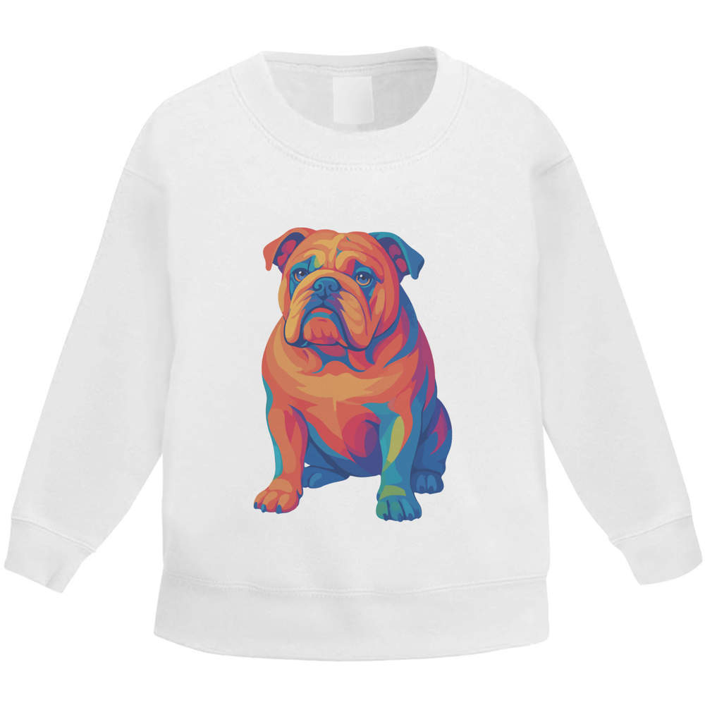 'A vibrant pop art style illustration of a British Bulldog, showcasing its iconic features with striking colors and bold lines'