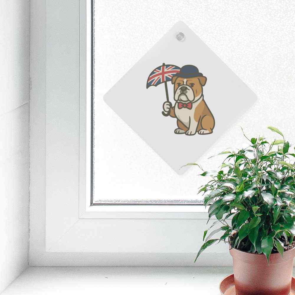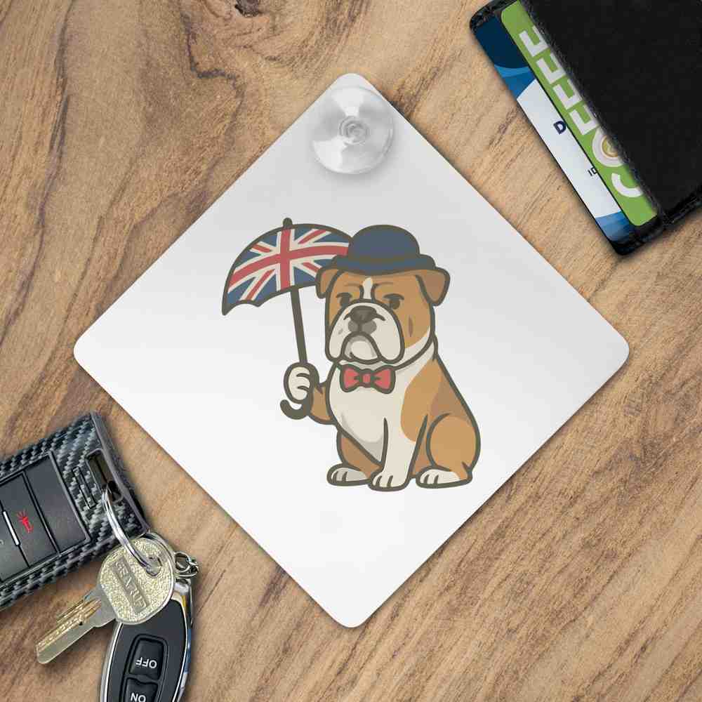 'A charming design featuring a British Bulldog in classic attire, perfect for celebrating UK culture and canine charm.'