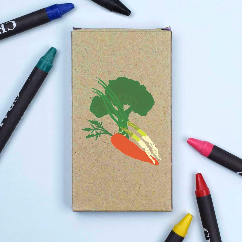 - A set of 6 vibrant colouring crayons with a handy storage box