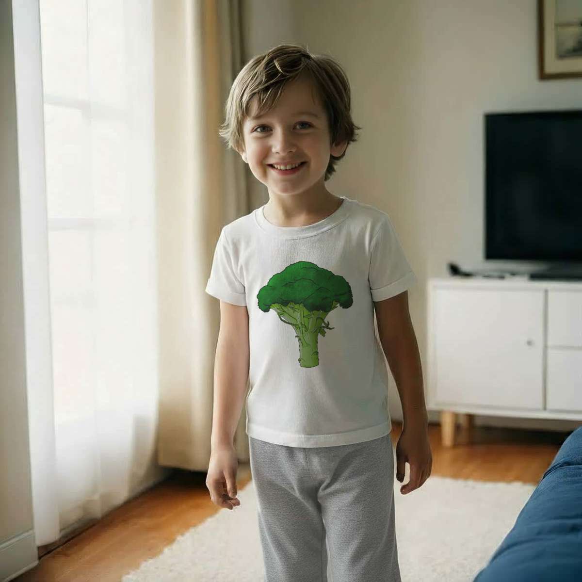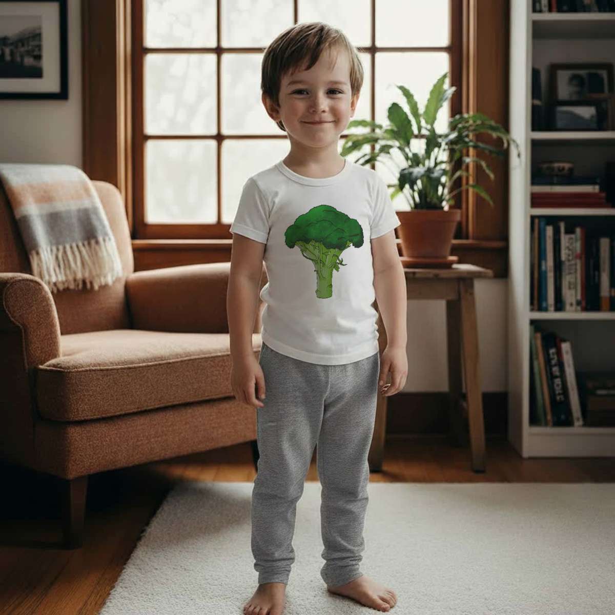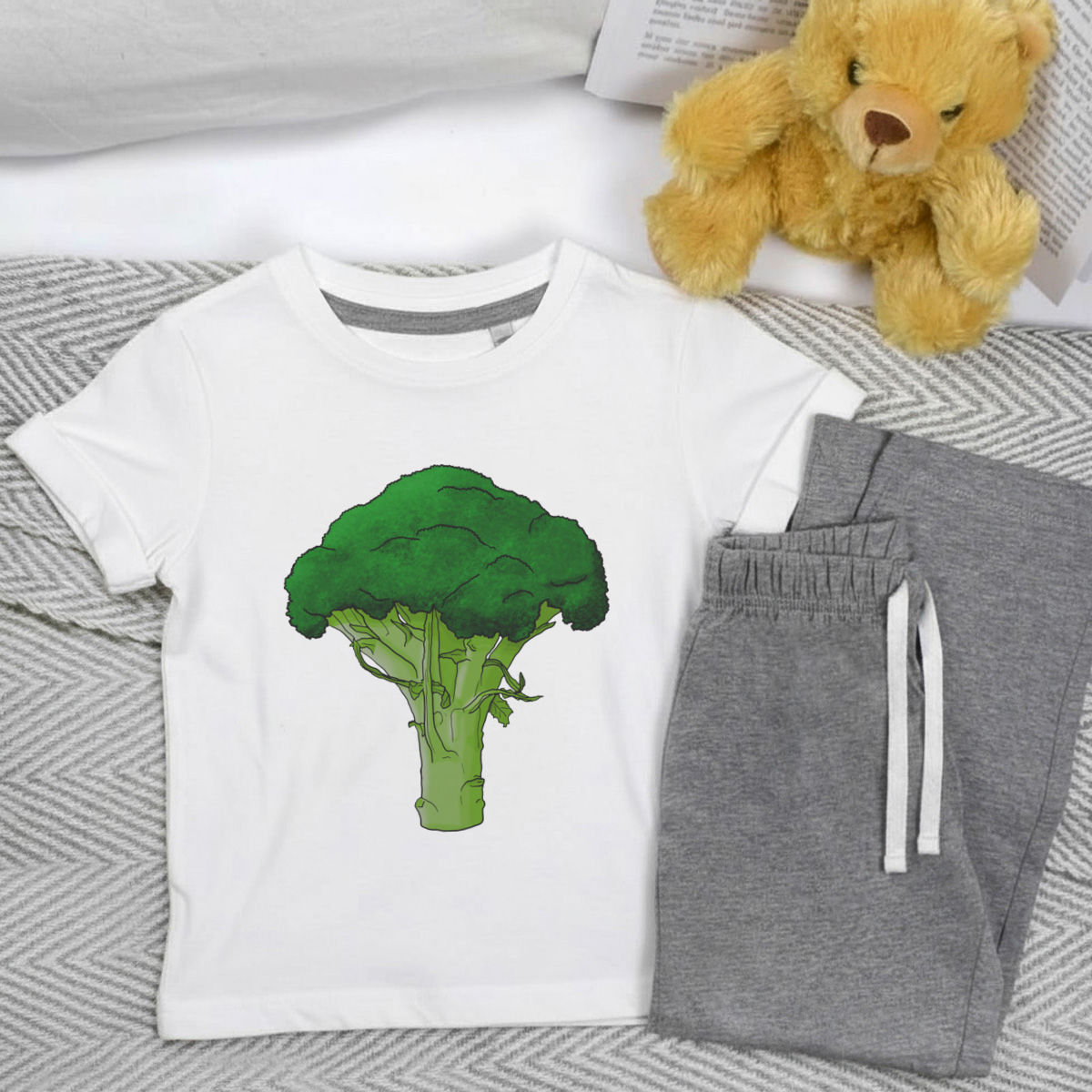'Broccoli' Kids Cotton Pyjama Set – Comfortable Children's Nightwear, Sleepwear and Loungewear - Unisex for Boys and Girls – Grey (KP028622)