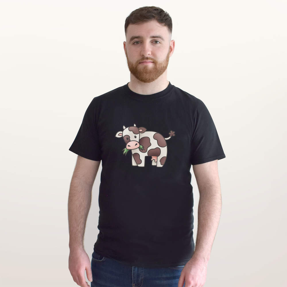 'Brown Cow Eating Grass' Unisex T-Shirt - 100 % Cotton, Black, XXL (TA00239171)