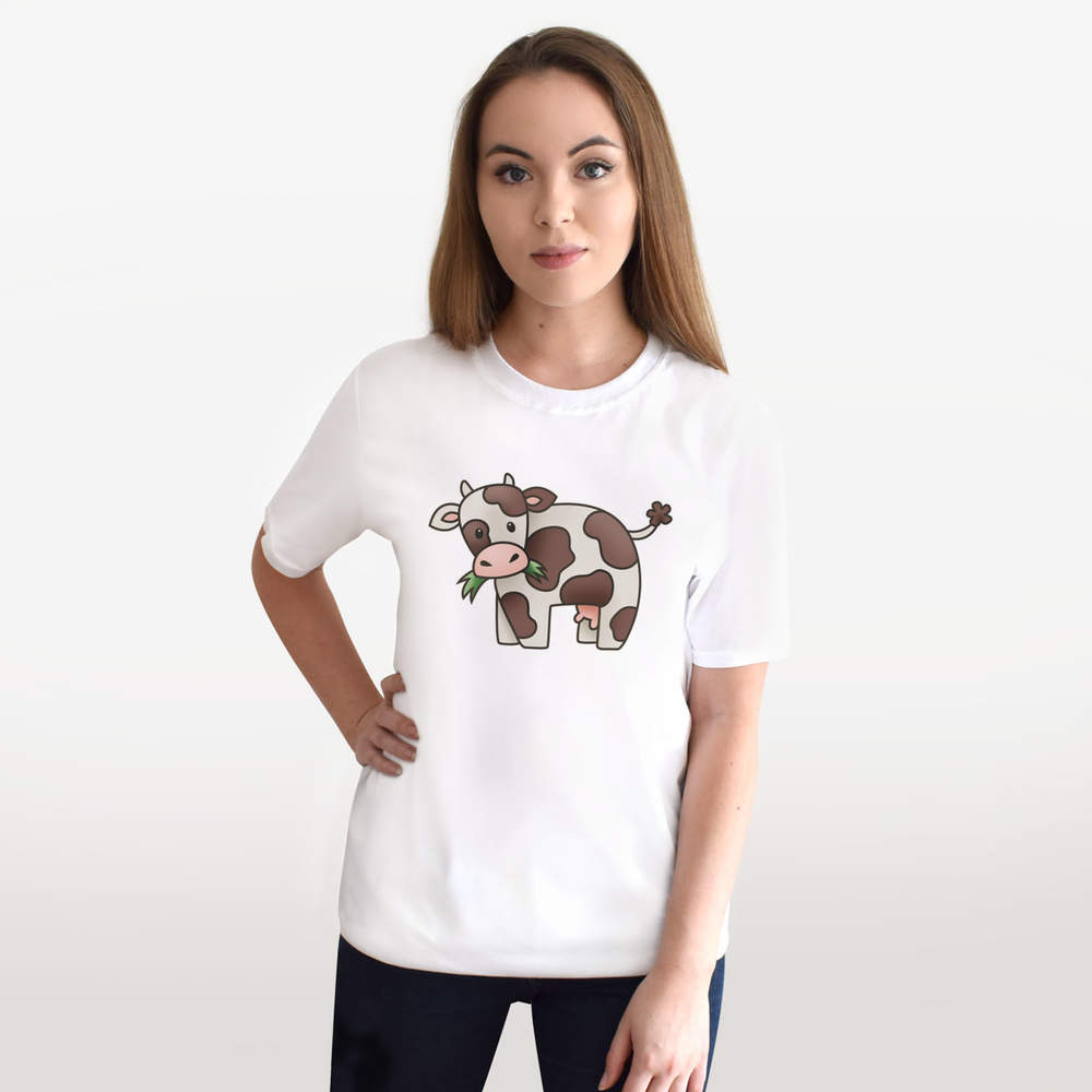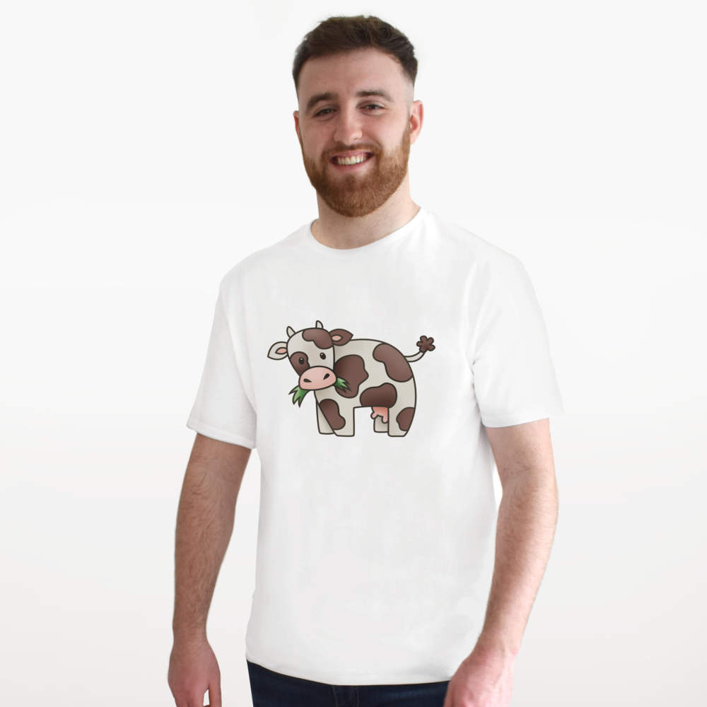 'Brown Cow Eating Grass' Unisex T-Shirt - 100 % Cotton, White, M (TA00038810)