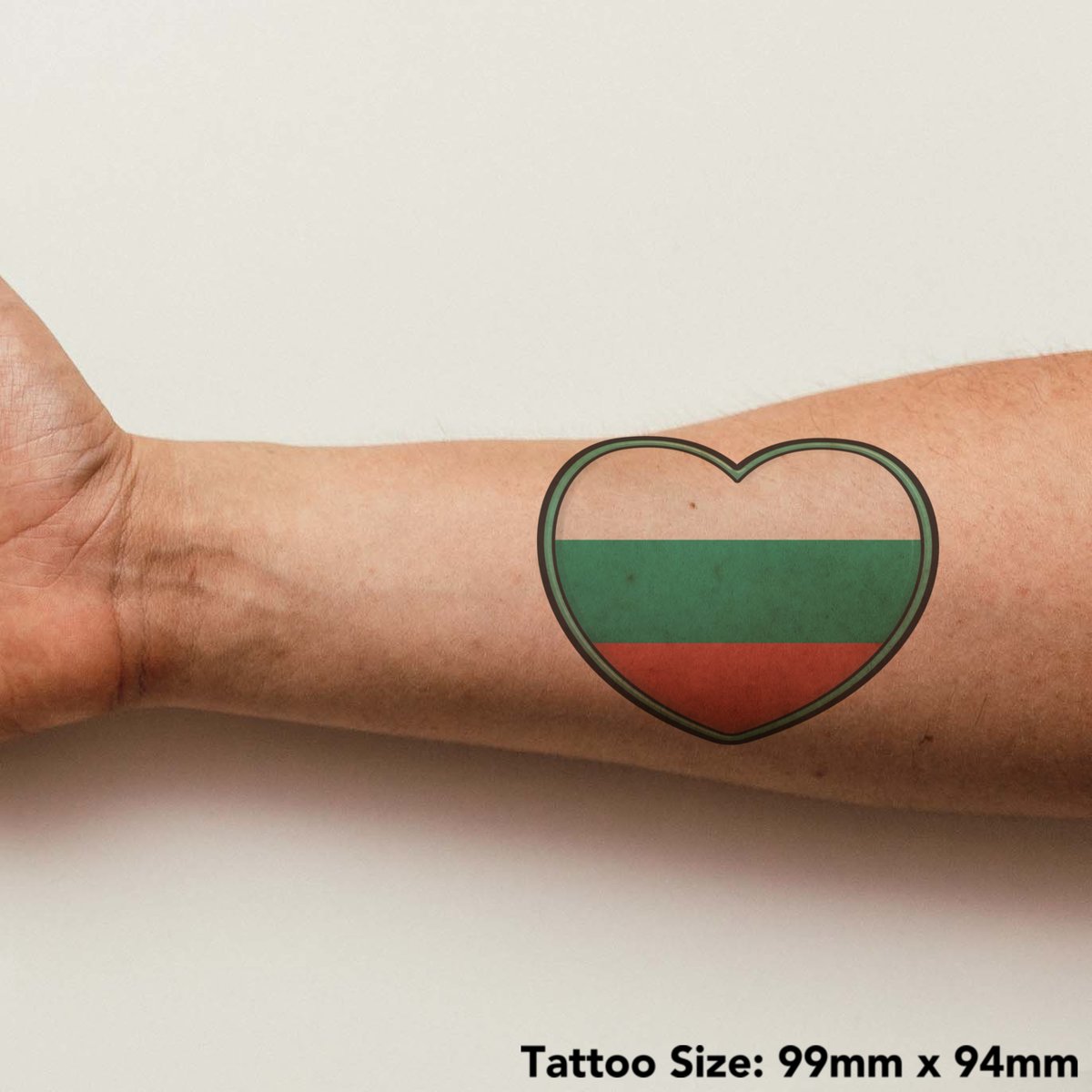 'Bulgaria Flag Heart' Temporary Tattoo - Water Resistant, Skin-Safe, Non-Toxic Transfer (TO00062925)