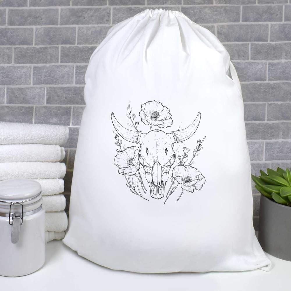 'Bull Skull with Flowers' Laundry / Washing / Storage Bag (LB00031625)