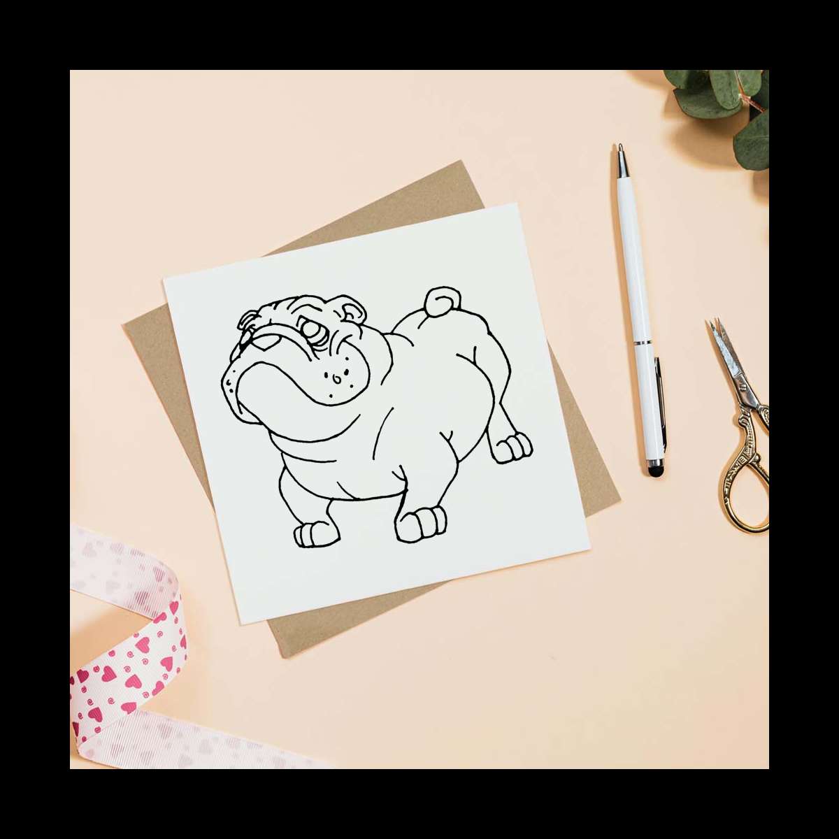 - Square greeting card supplied with a recycled brown envelope