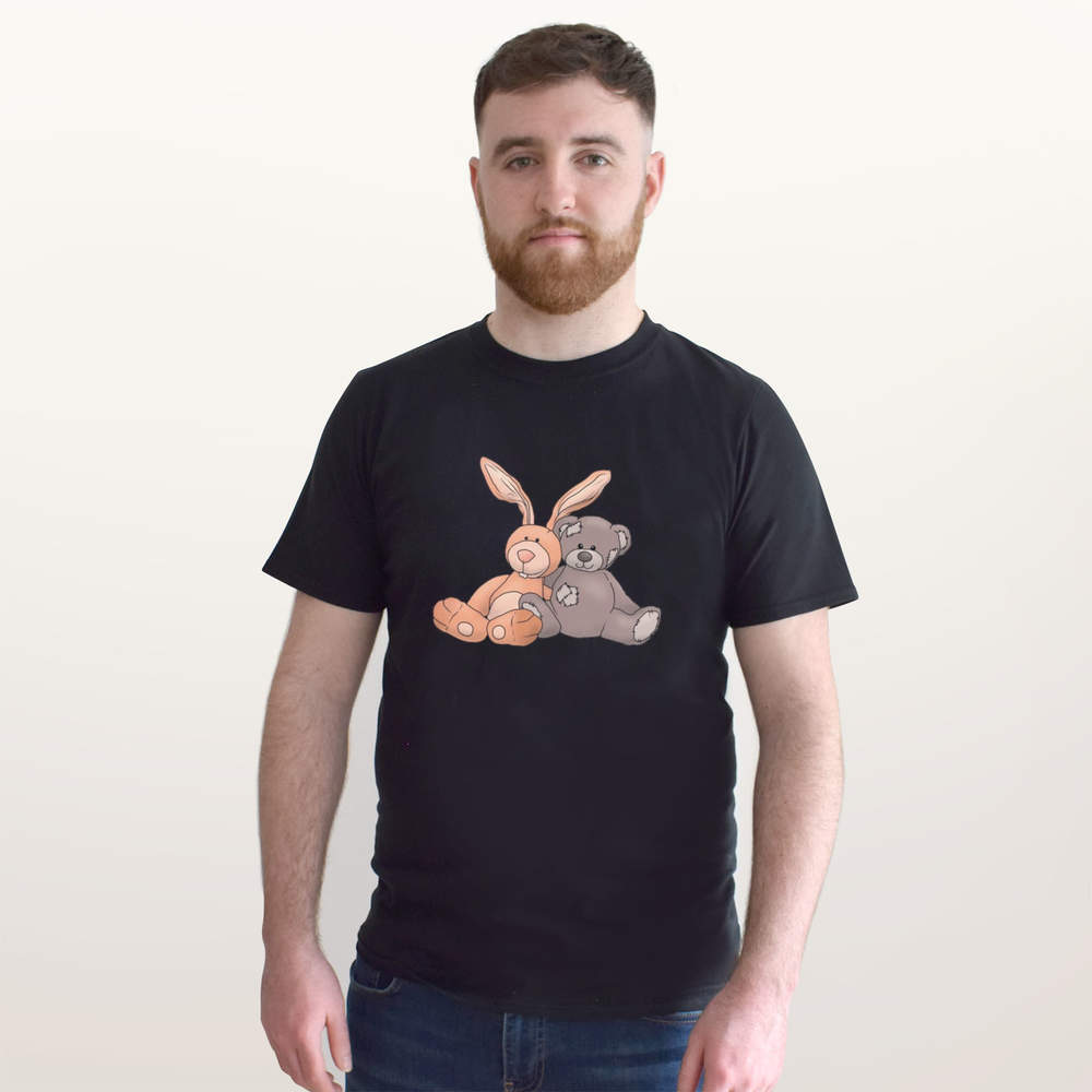 'Bunny & Teddy Toy Cuddle' Unisex T-Shirt - 100 % Cotton, Black, XXL (TA00260998)