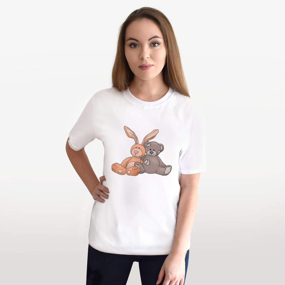 'Bunny & Teddy Toy Cuddle' Unisex T-Shirt - 100 % Cotton, White, M (TA00206805)