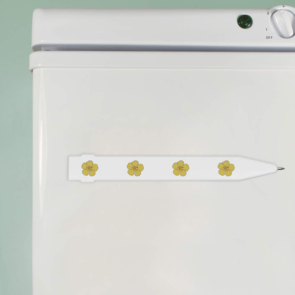 - A flat ballpoint pen with magnetic strip on the back