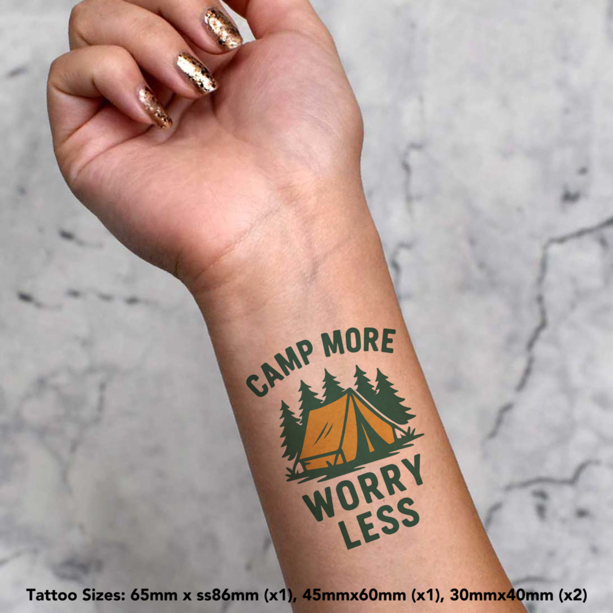 'Camp More Worry Less' Temporary Tattoos - Water Resistant, Skin-Safe, Non-Toxic Transfers (TO055487)