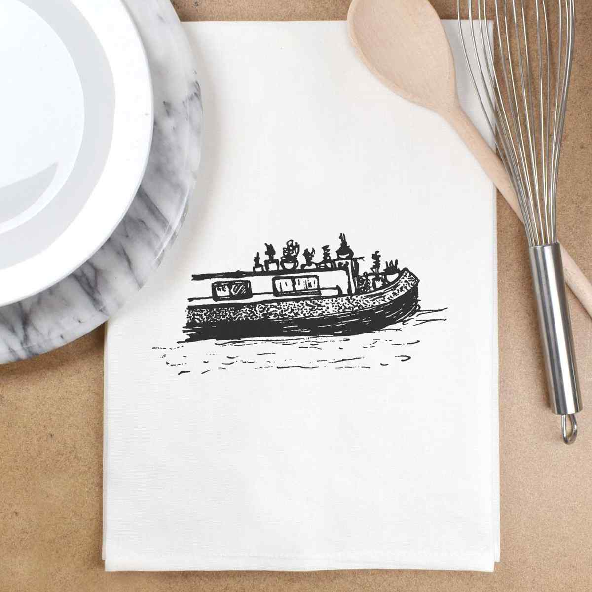'Canal Boat' Cotton Tea Towel / Dish Cloth (TW005572)
