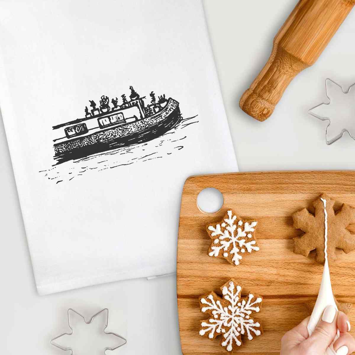 - White cotton tea towel with hanging loop