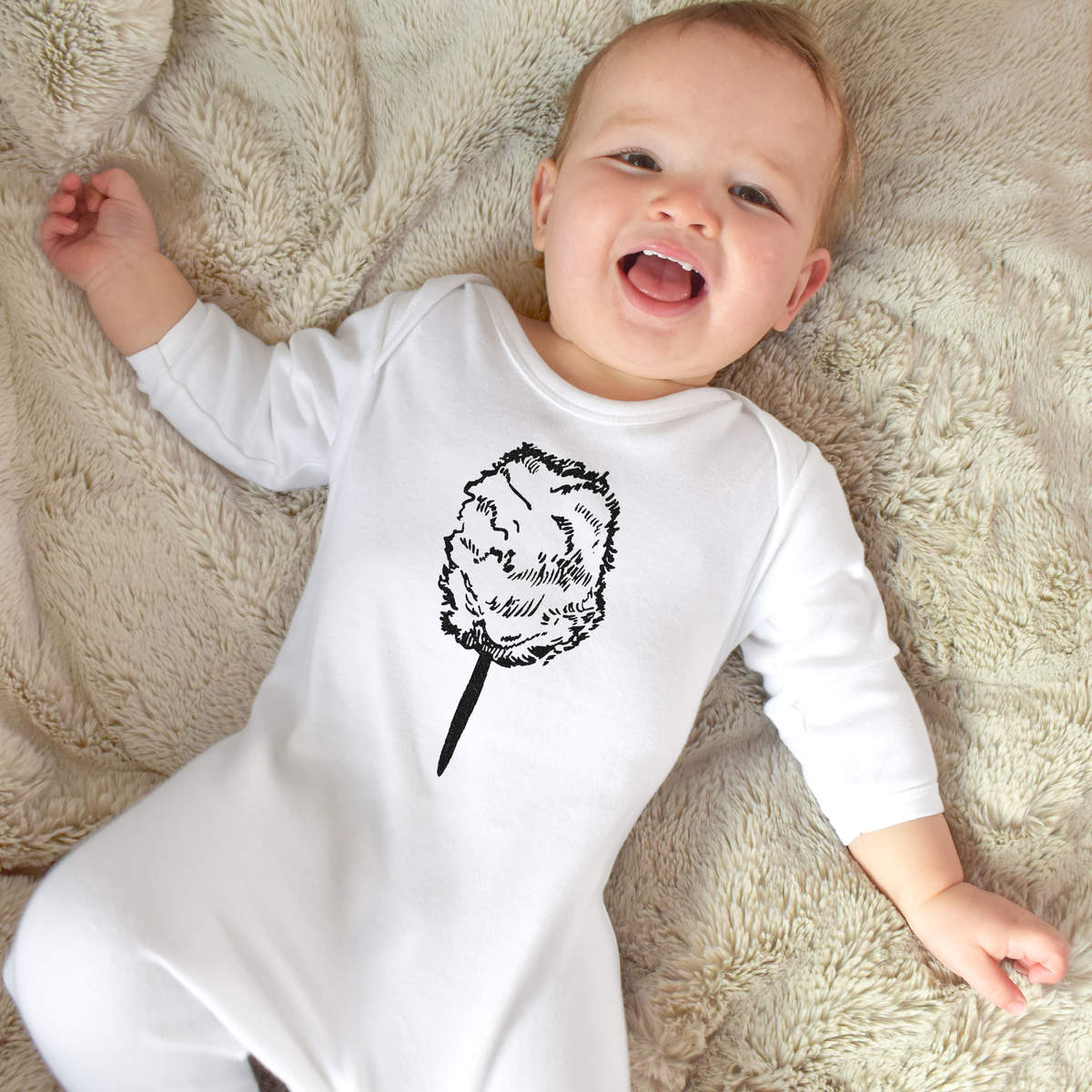 Little ones can sleep peacefully in this super soft romper sleepsuit. Our unisex jumpsuits are made from 100% cotton and are printed on the front with a unique design. Practical functions include popper fastenings for ease of changing and built-in feet.