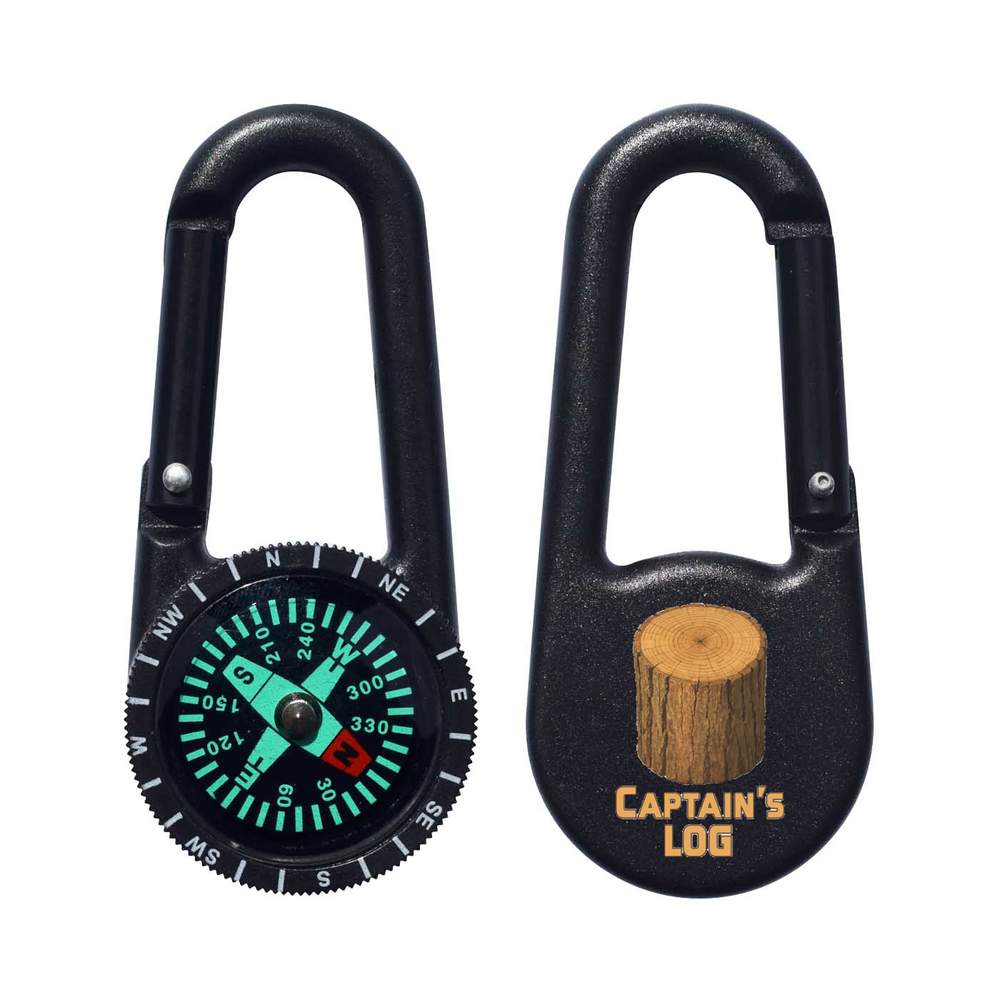 - A two in one keyring with a carabiner clip and handy compass