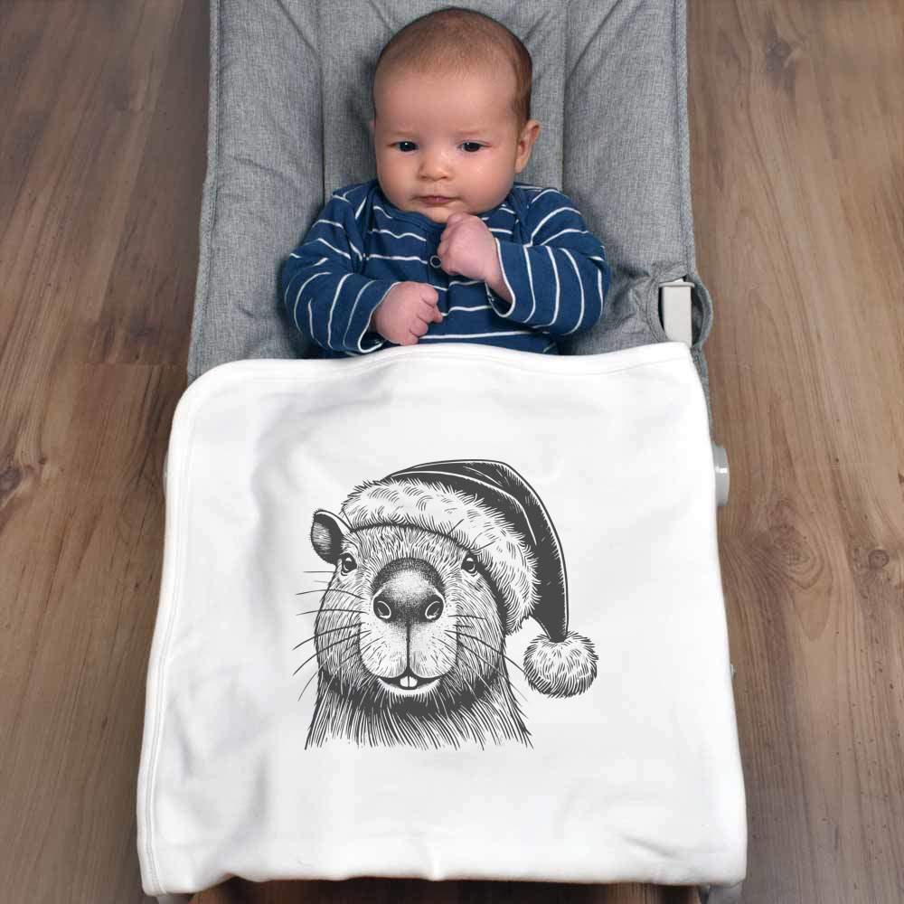 'Capybara Wearing Santa Hat' Cotton Baby Blanket / Shawl (BY00038934)