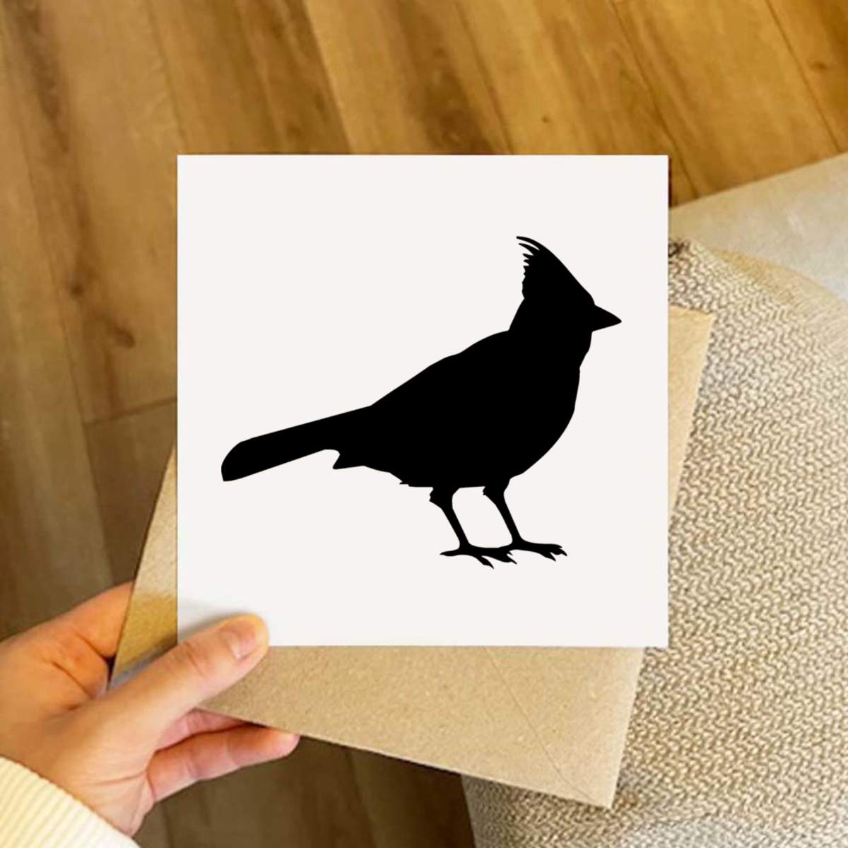 - Square greeting card supplied with a recycled brown envelope
