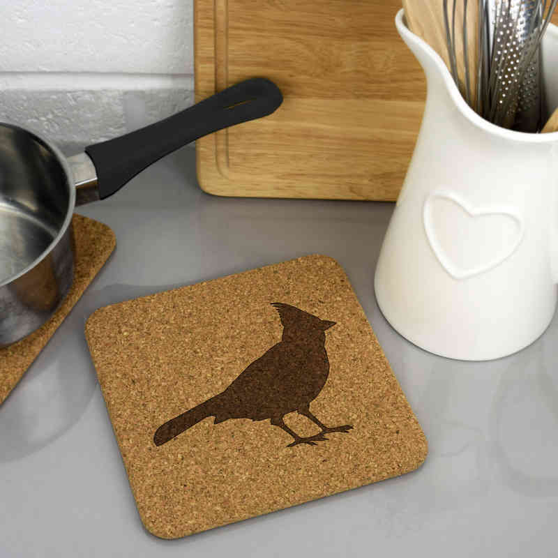 'Cardinal Bird' Square Cork Trivet / Pot Stand (TR00024272)