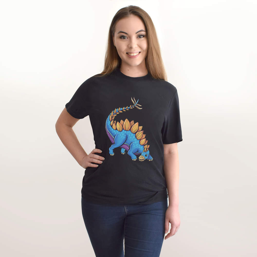 'Cartoon Stegosaurus Dinosaur' Unisex T-Shirt - 100 % Cotton, Black, L (TA00202418)