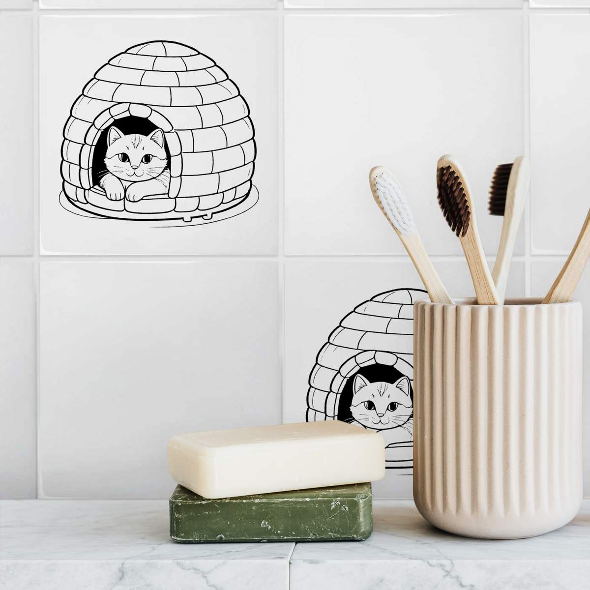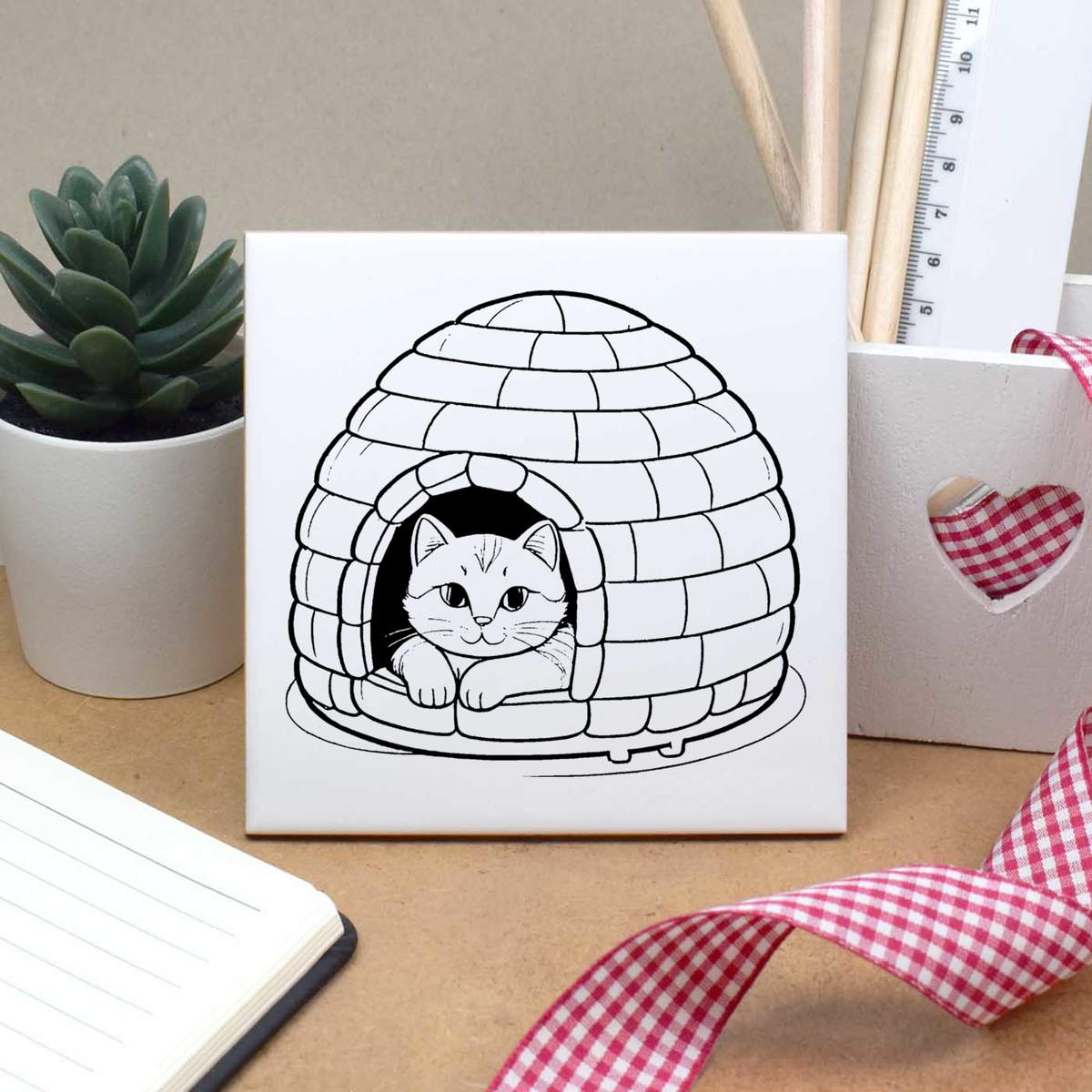 'Cat In a Cozy Igloo Bed' 108mm Square Ceramic Tile (TD00025582)