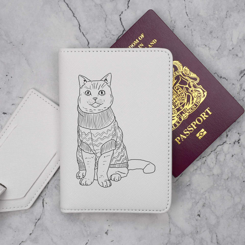 'Cat In Christmas Jumper' Passport Cover & Luggage Tag Travel Set (PA00014698)