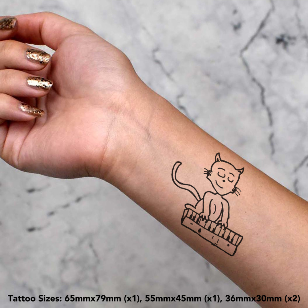 'Cat Playing Piano' Temporary Tattoos - Water Resistant, Skin-Safe, Non-Toxic Transfers (TO028305)