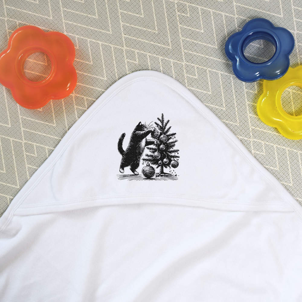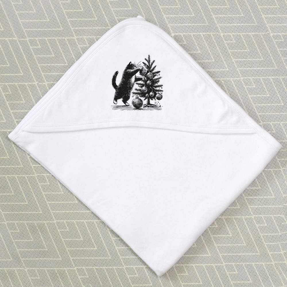 'Cat Wrecking Christmas Tree' Baby Hooded Towel (HT00032311)