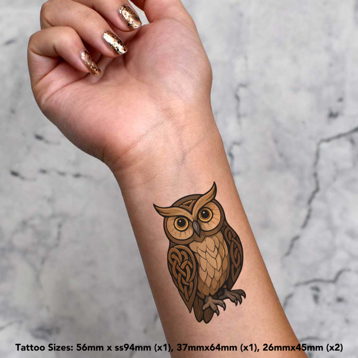 'Celtic Owl' Temporary Tattoos - Water Resistant, Skin-Safe, Non-Toxic Transfers (TO056569)