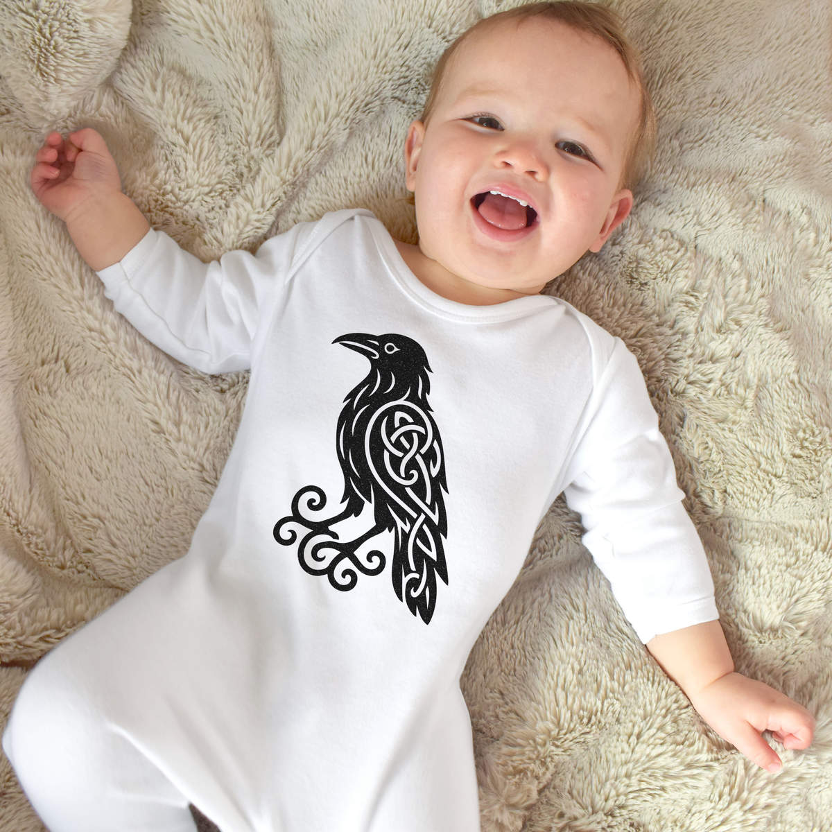 'This striking design showcases a raven with interwoven Celtic knot patterns, representing wisdom and folklore with a mythological aesthetic.'