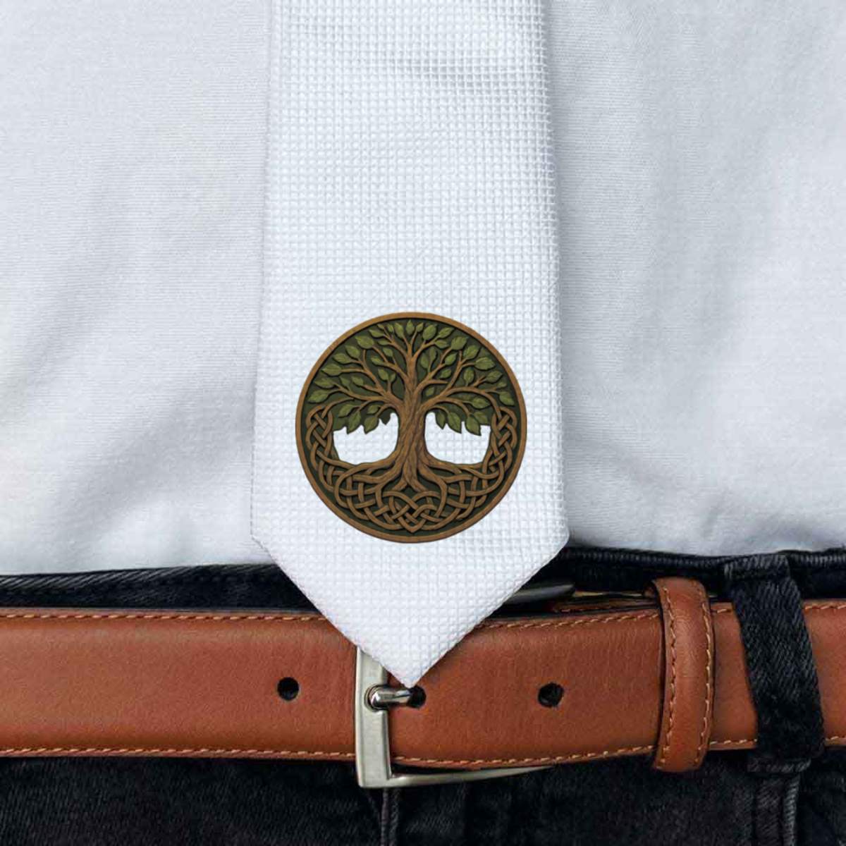 This stylish slim white tie is guaranteed to add class to any outfit. Printed on the front with a design from one of our talented designers, these ties are perfect for formal events, special occasions or making a statement at the office.