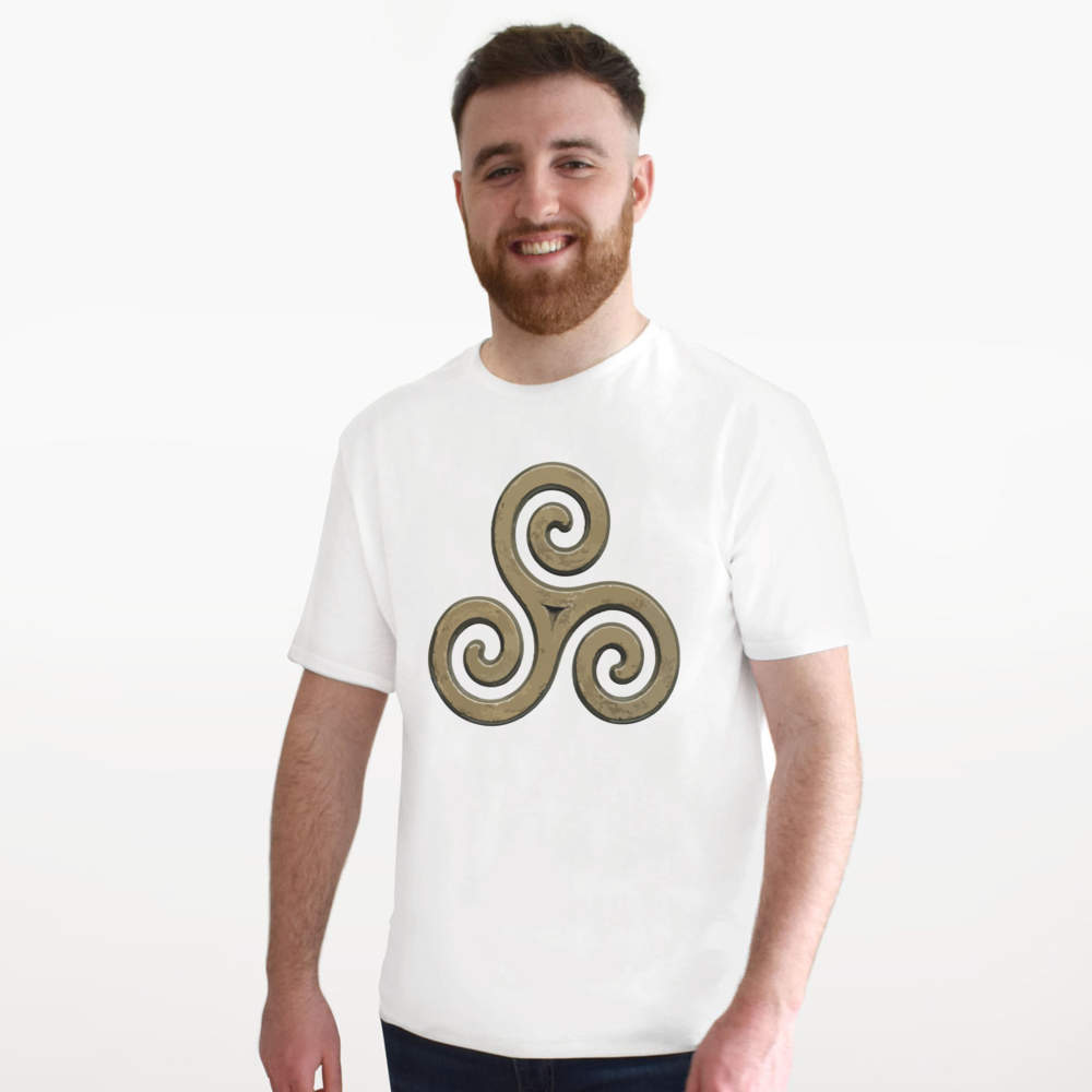 'Celtic Triskelion Triple Spiral Symbol Design' Unisex T-Shirt - 100 % Cotton, White, XXL (TA00401592)