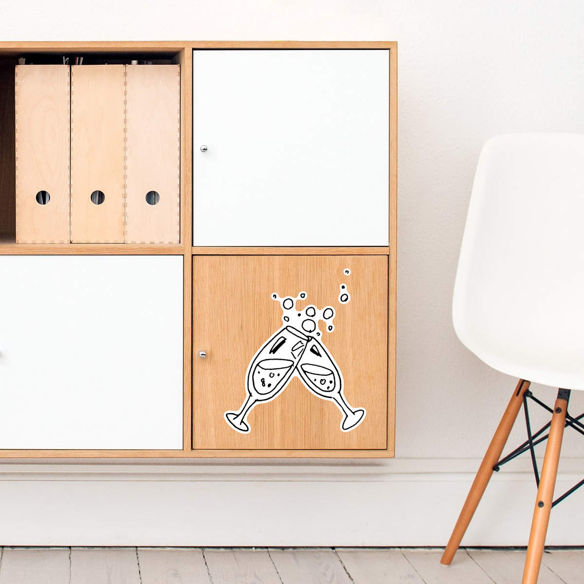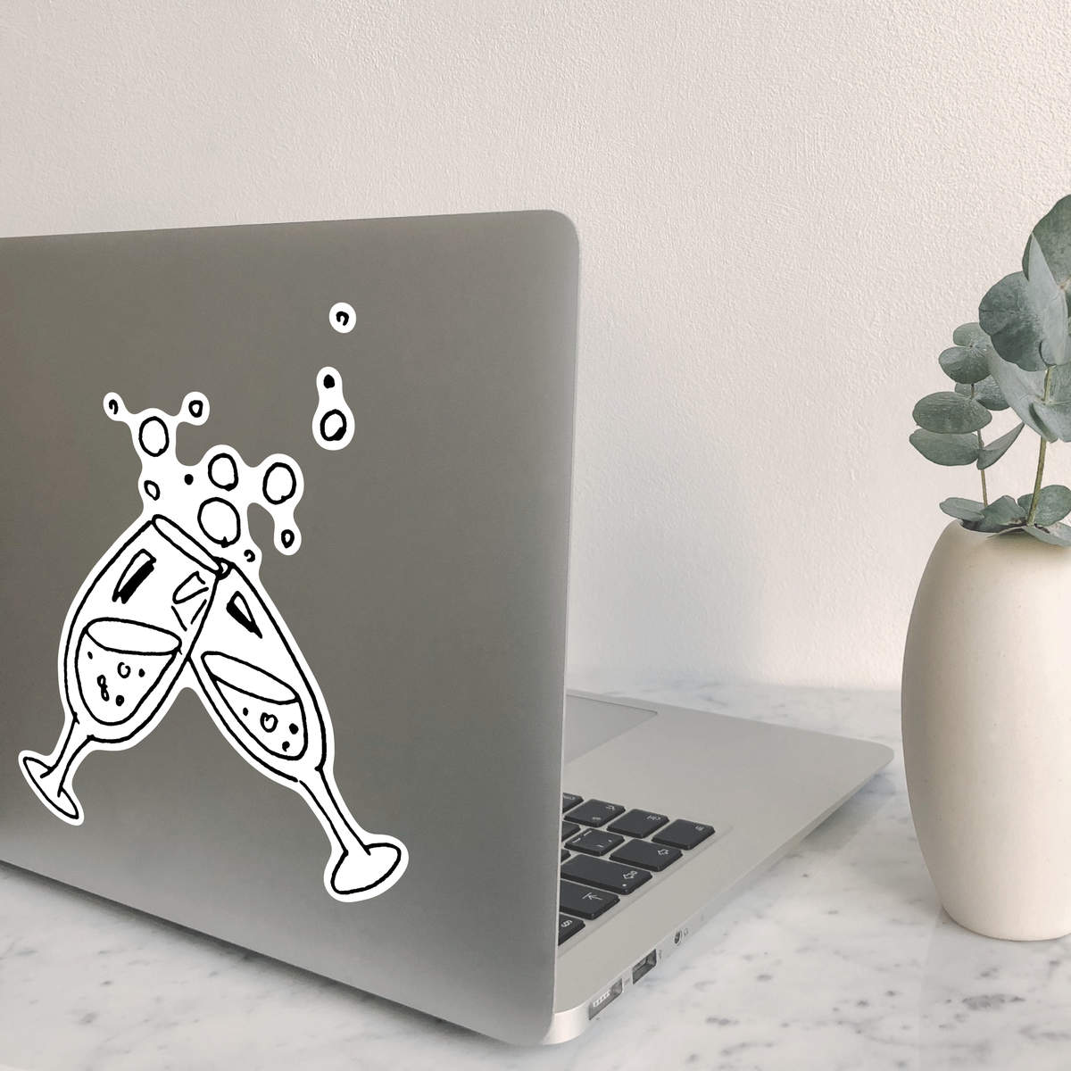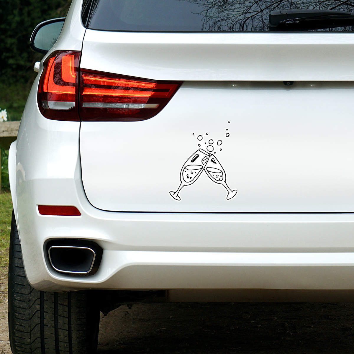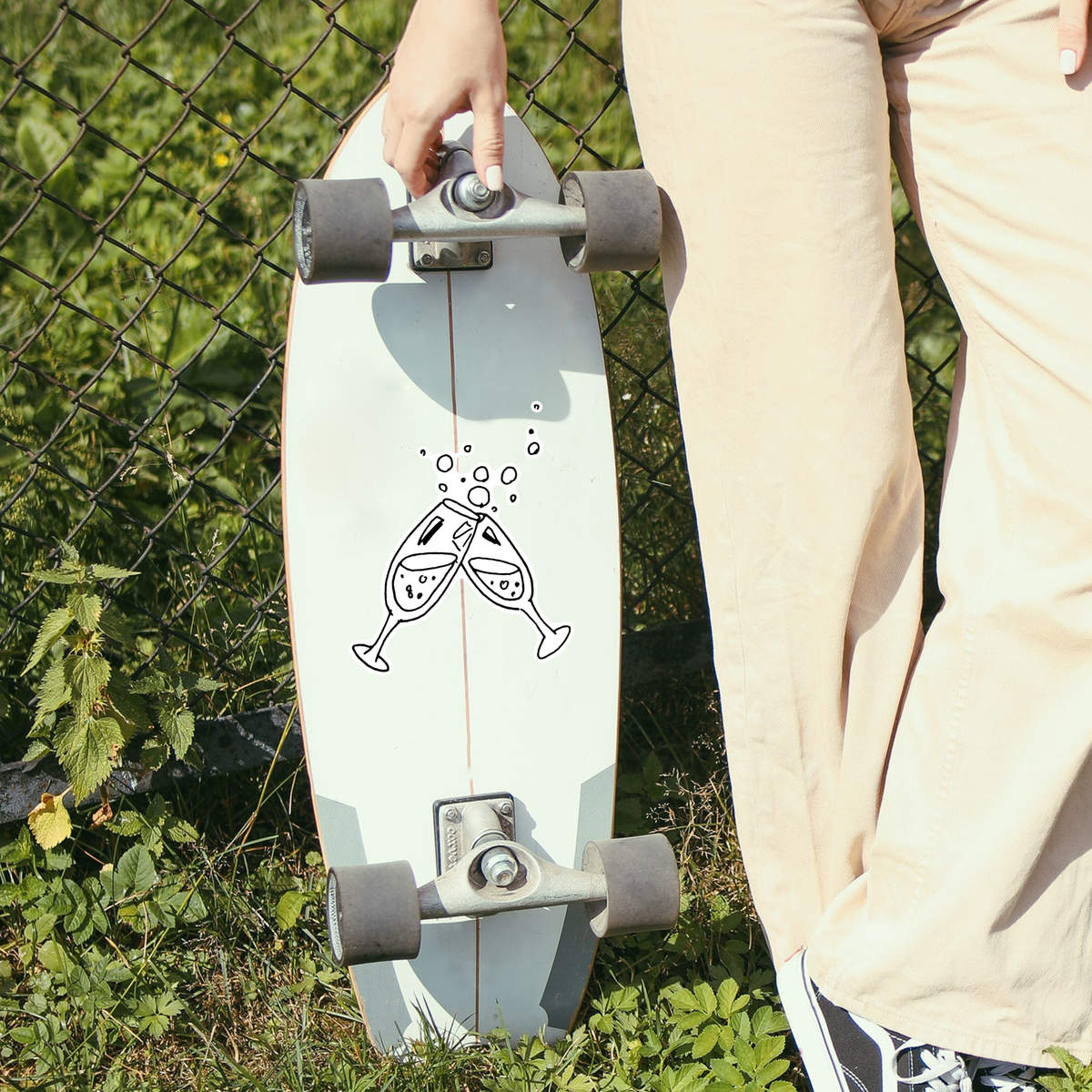 'Champagne Glasses' White Premium Vinyl Decal Sticker – Waterproof, Durable & Easy to Apply - For Car Bumpers, Windows, Bins & More - Large (210mm) (DW00005091)