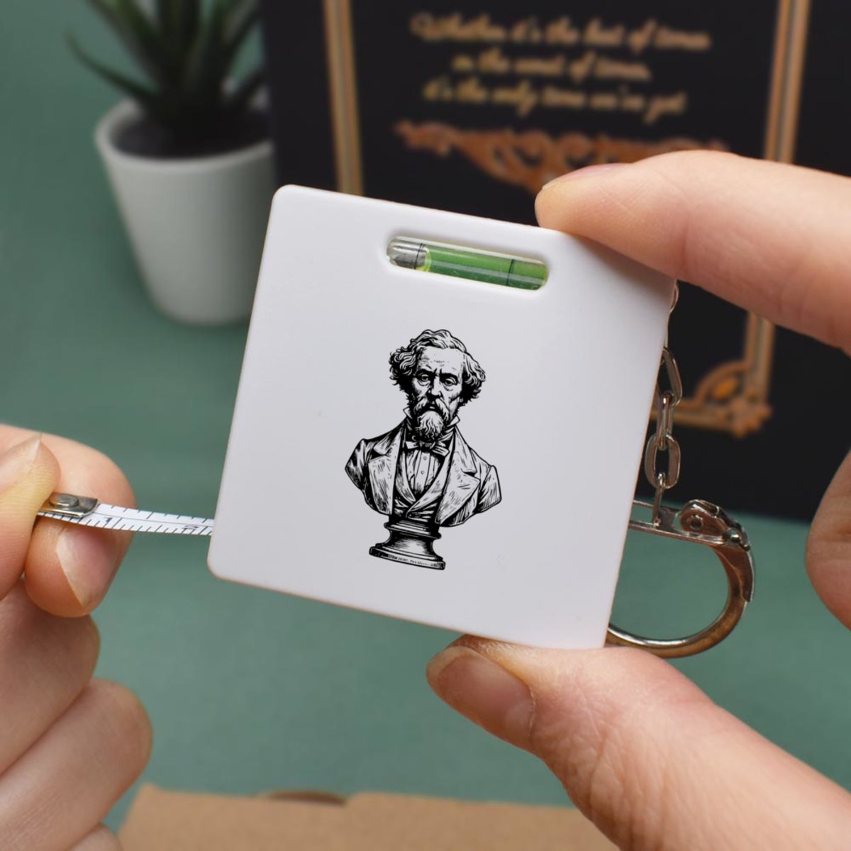 This multifunctional tool offers both a tape measure and spirit level in one handy little accessory. The retractable, 1 metre tape measure has both imperial and metric units, while the flat edges around its plastic casing provide the ability to check both vertical and horizontal surfaces with a mini spirit level. The compact and lightweight design makes it easy to carry around; simply attach with the keychain provided and whip it out when needed. Each keyring tape measure tool is printed on one side with a unique design.