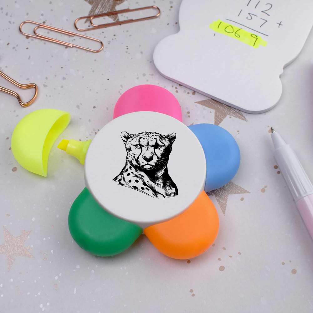 'Cheetah Portrait' Flower Shape Highlighter Pen (HL00038805)