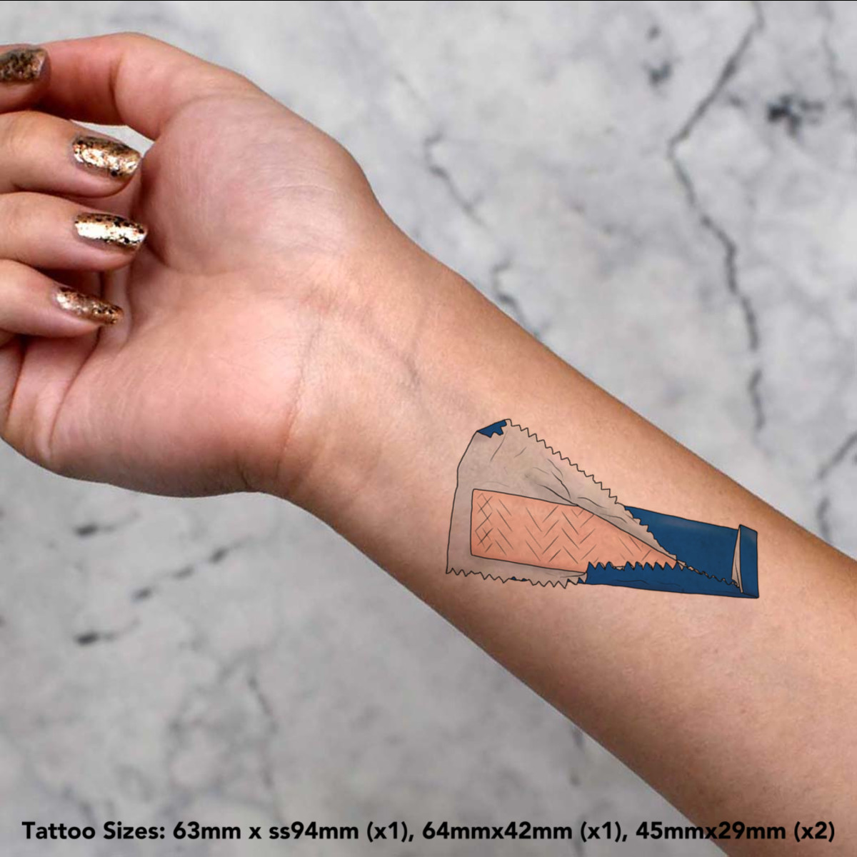 This pack of four temporary tattoos is a simple and creative way to add some personality to your look — no needles, no commitment. Perfect for parties, events, or everyday fun, each tattoo is made from skin-safe, non-toxic materials and is easy to apply.The waterproof finish helps them stay put through daily activities, while the mixed sizes makes them ideal for use on wrists, ankles, hands, and more. When you're ready for a change, the tattoo can be removed easily with baby oil or alcohol.