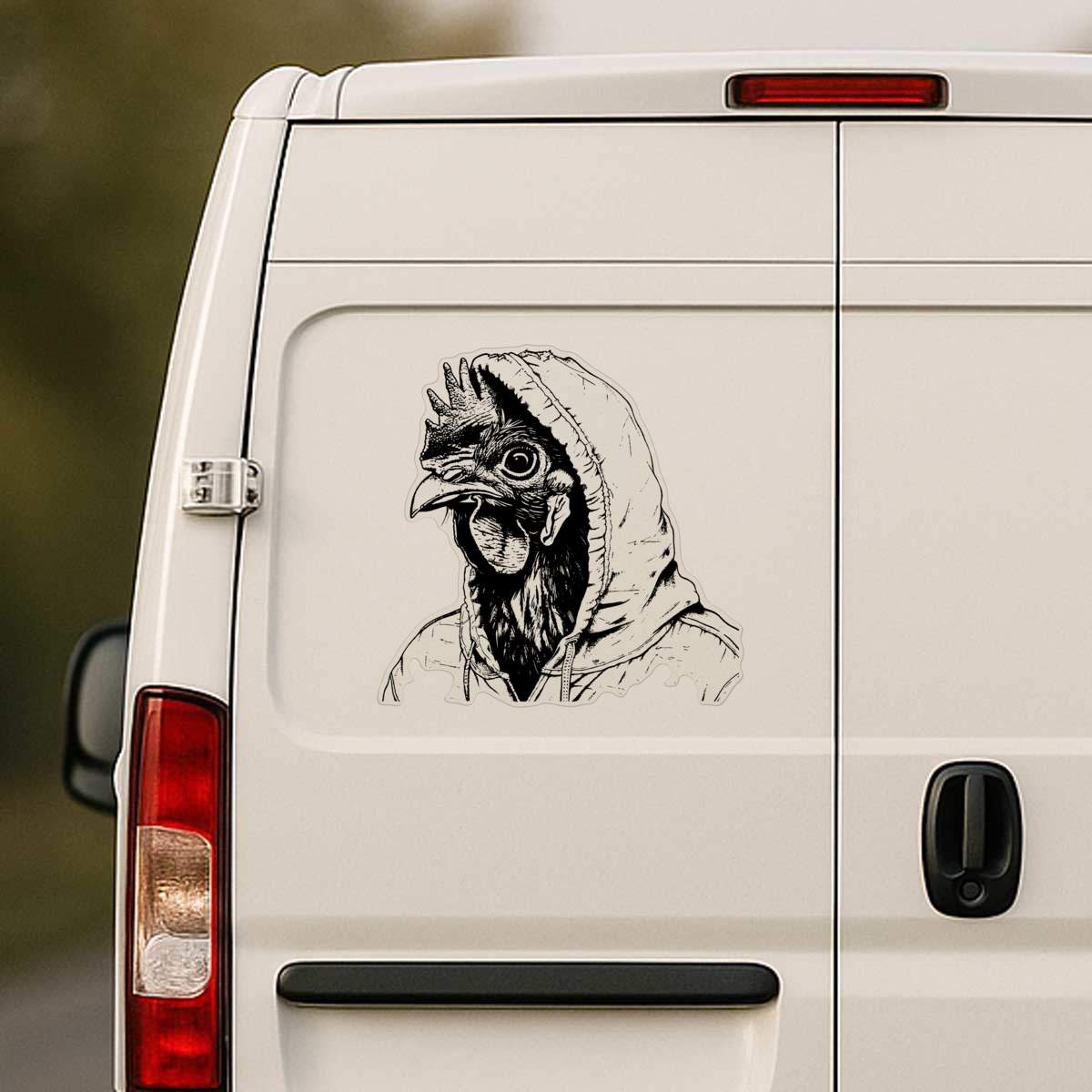 'Chicken in a Hoodie' Clear Premium Vinyl Decal Stickers – Waterproof, Durable & Easy to Apply - For Car Bumpers, Windows, Bins & More - XL (460mm) (DC00130635)