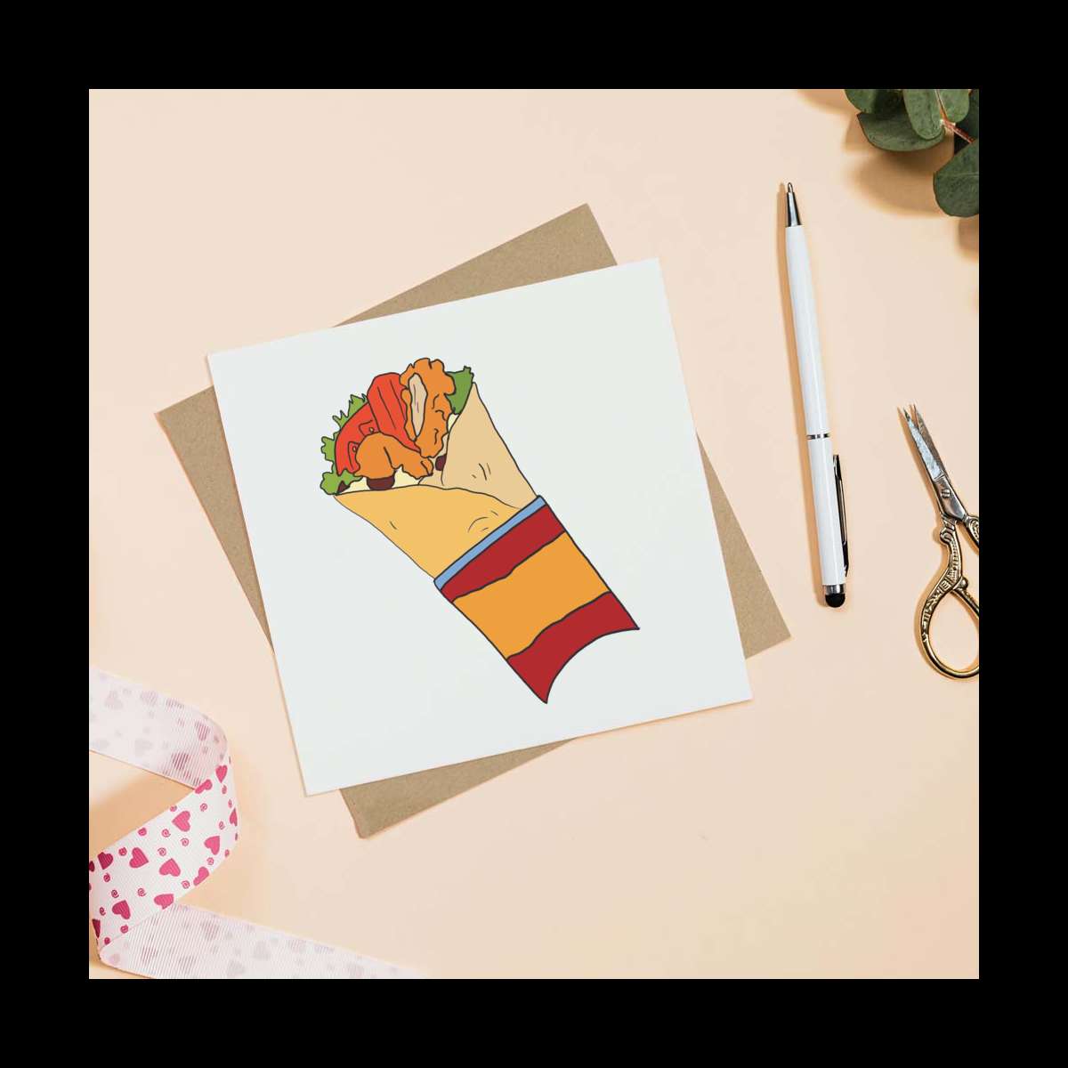 - Square greeting card supplied with a recycled brown envelope