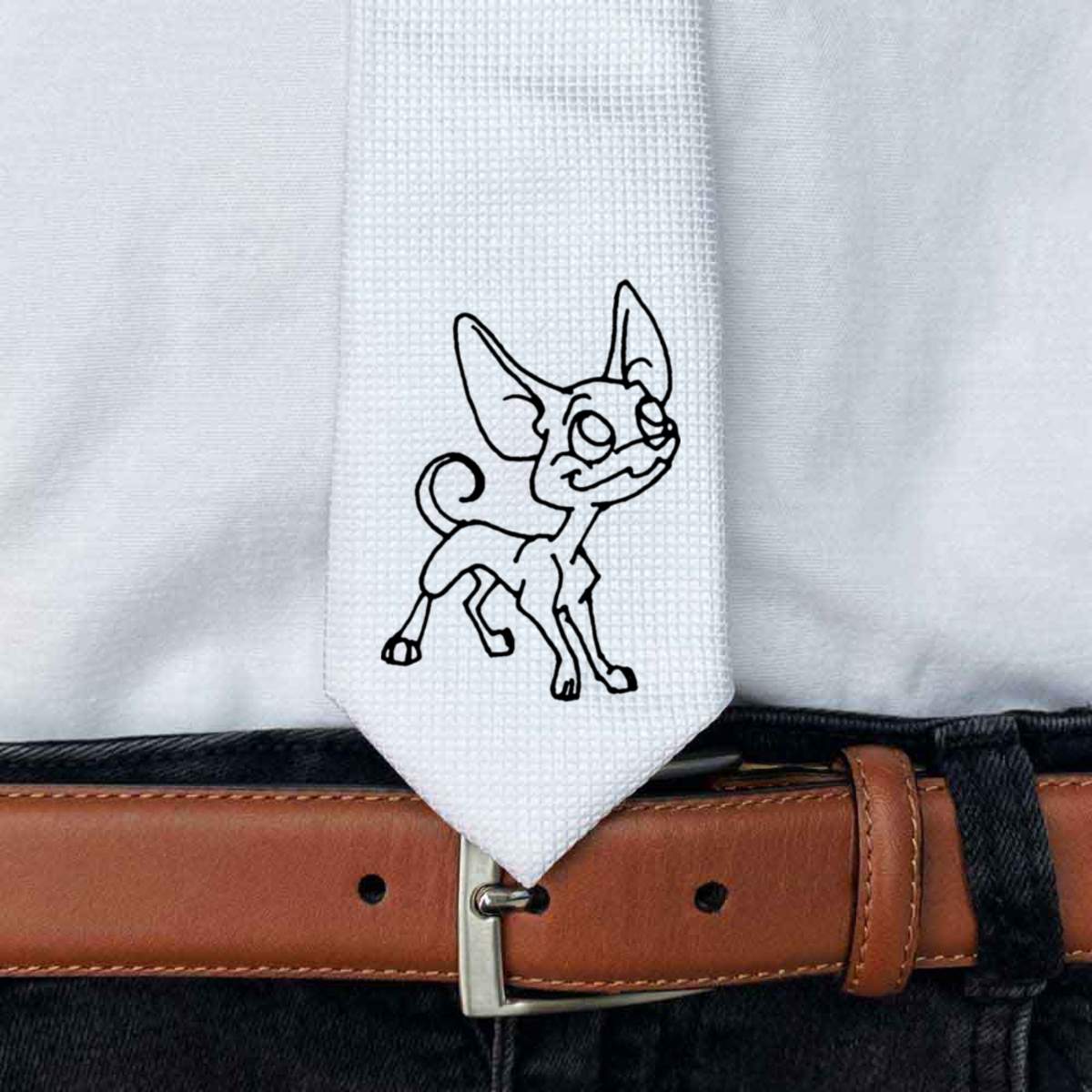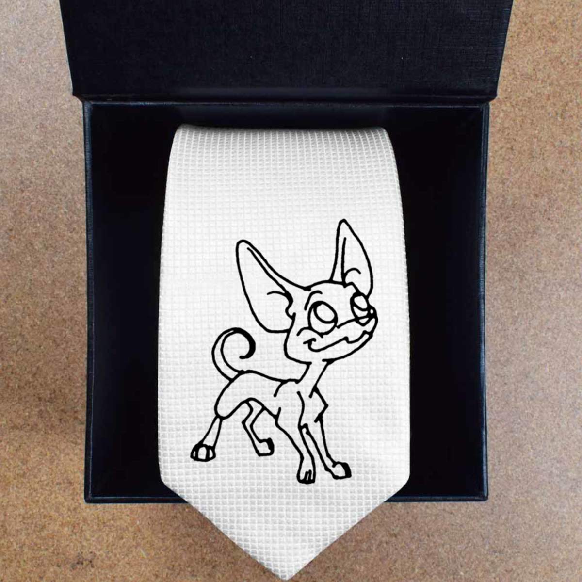 'Chihuahua Dog' White Tie / Necktie with Gift Box (AT00000376)